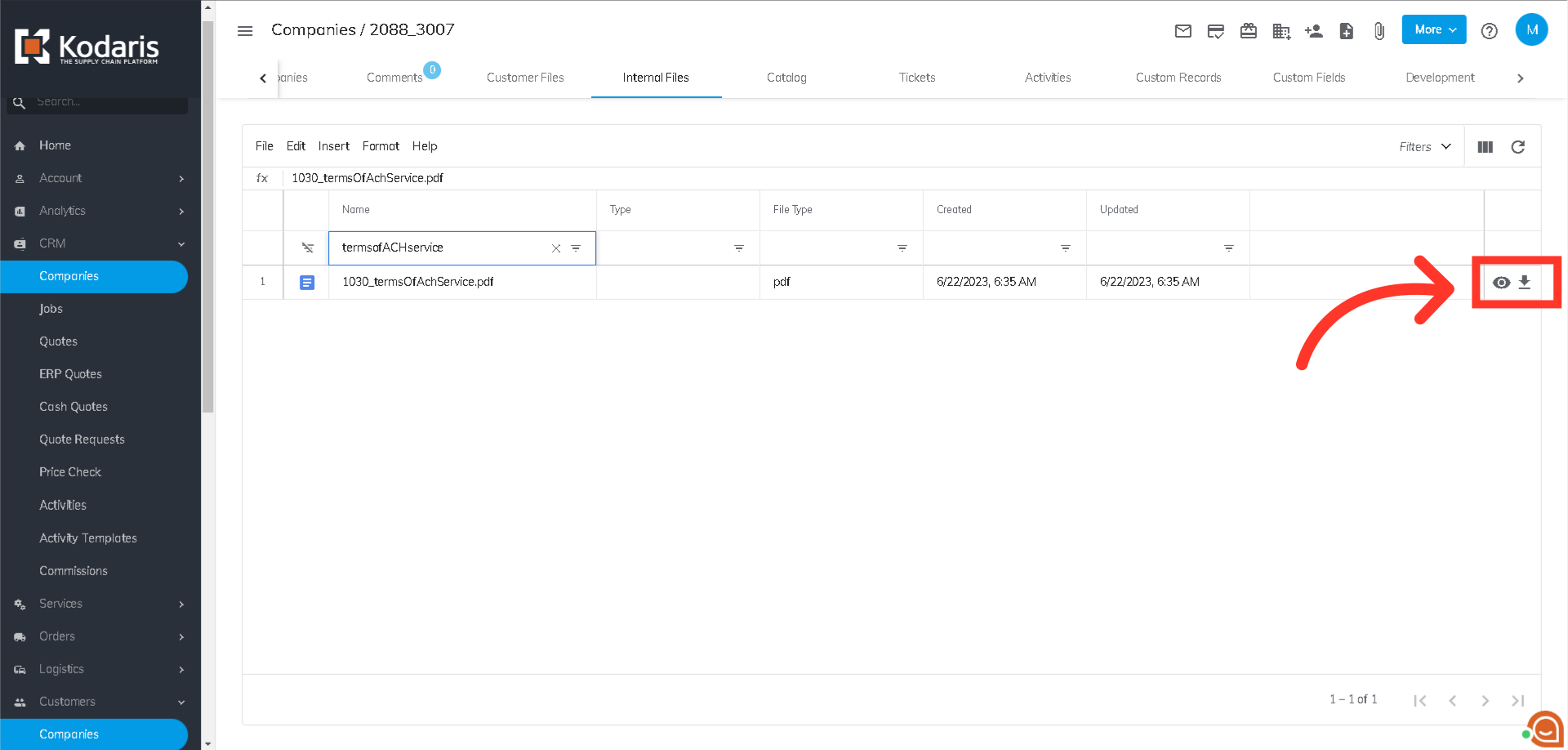 Click the eye icon to view, or the arrow down icon to download the PDF.