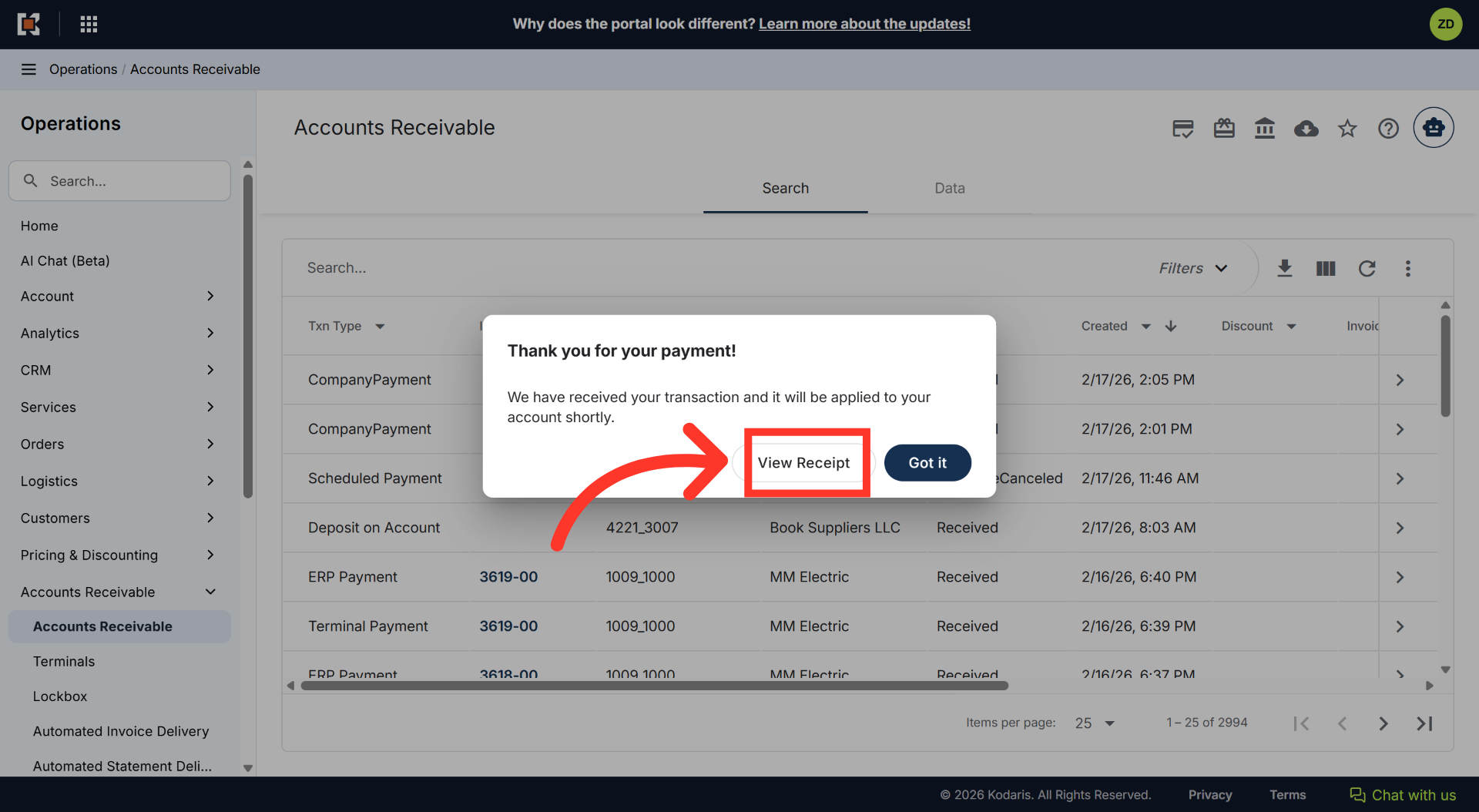 Once payment has been made you will receive a confirmation message and you can click "Got it" to confirm and dismiss the message. You can also choose to view and print the receipt by clicking "View Receipt".