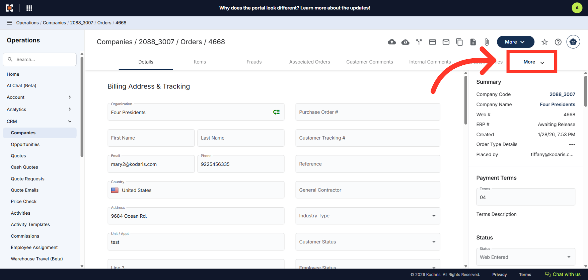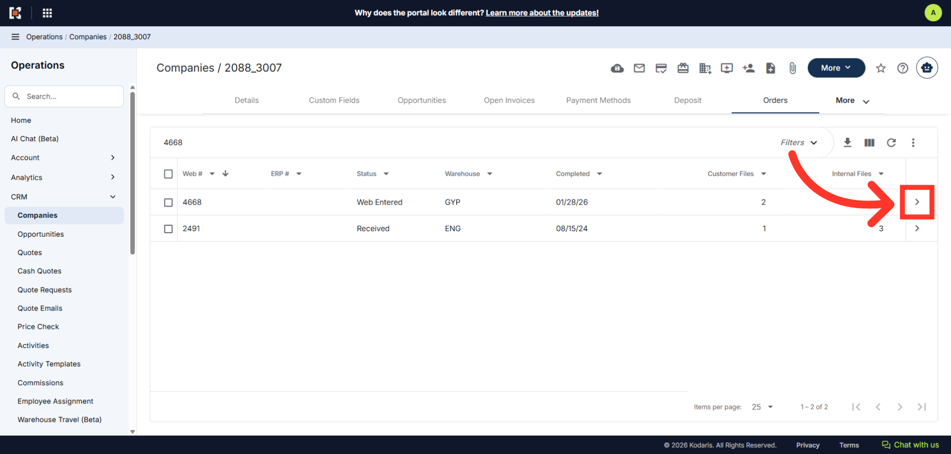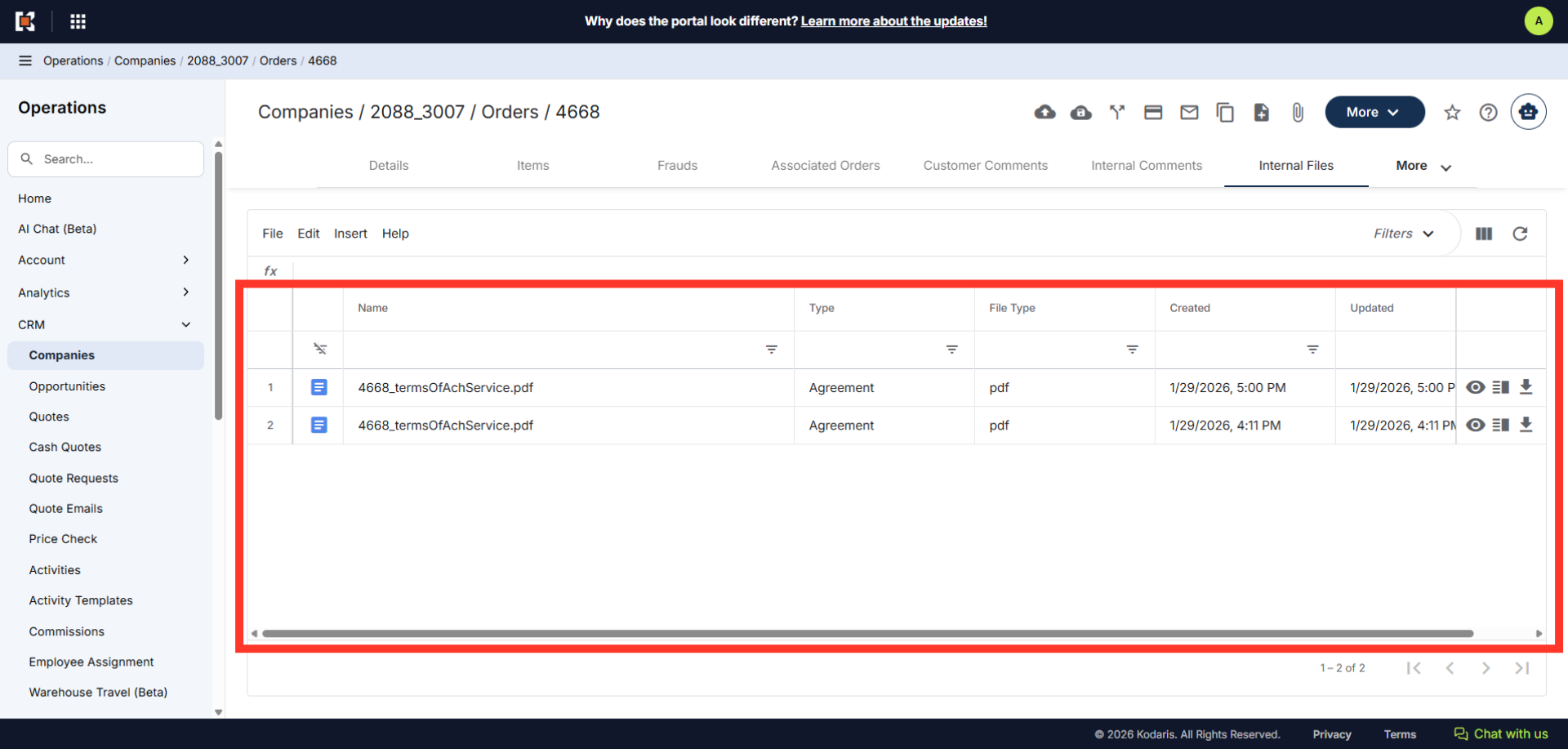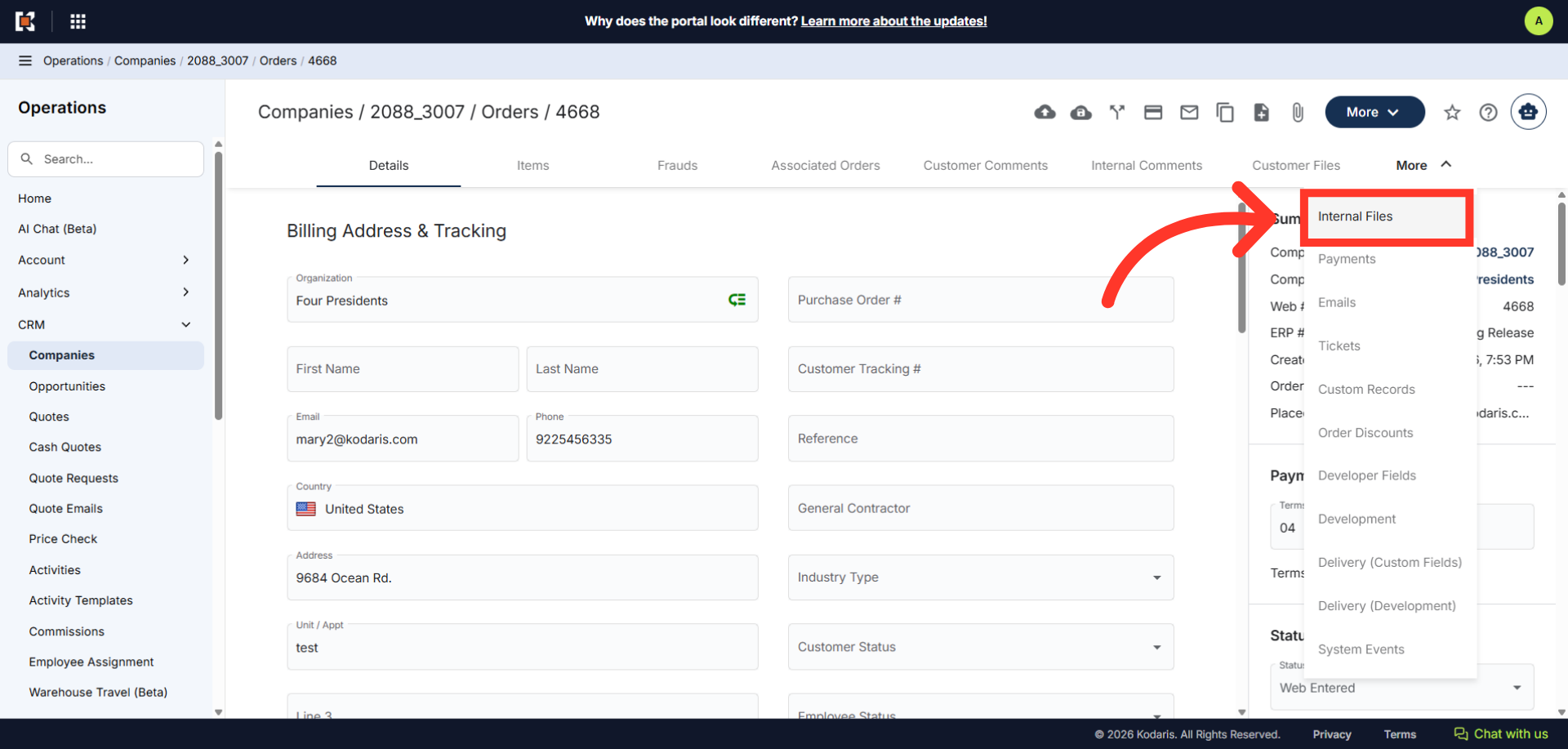 In order to access internal files from the companies order screen, navigate to the "CRM" section in the Operations Portal.