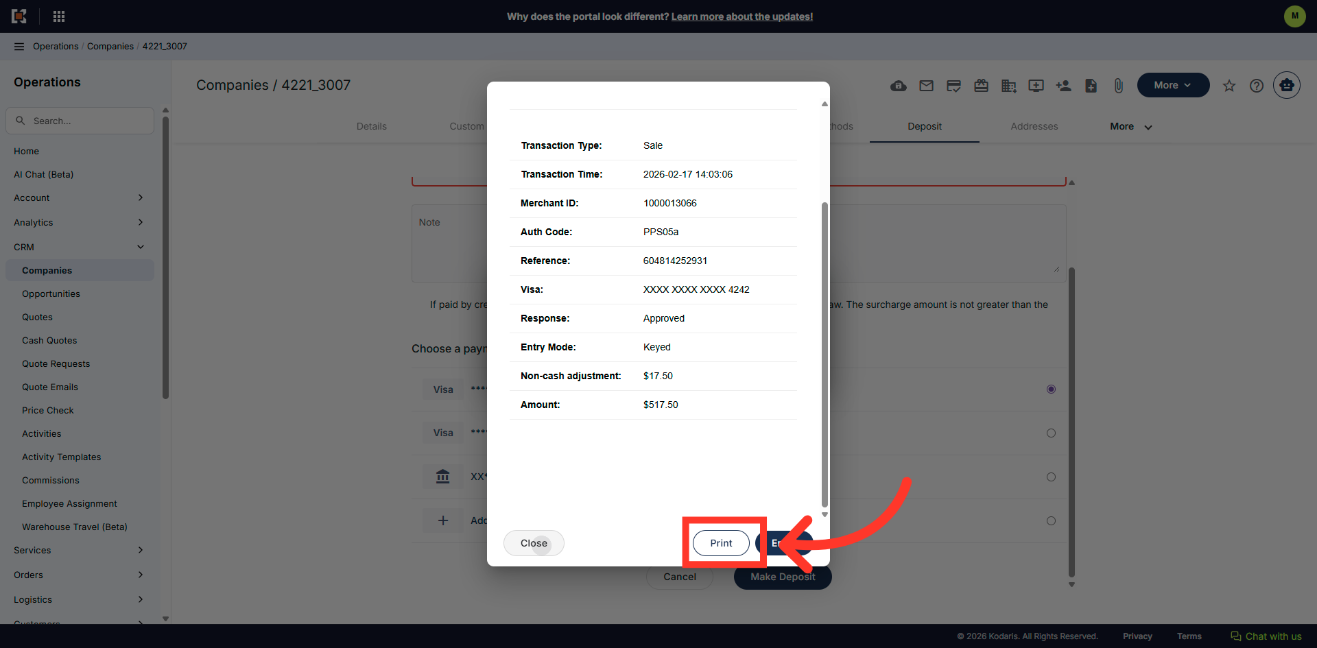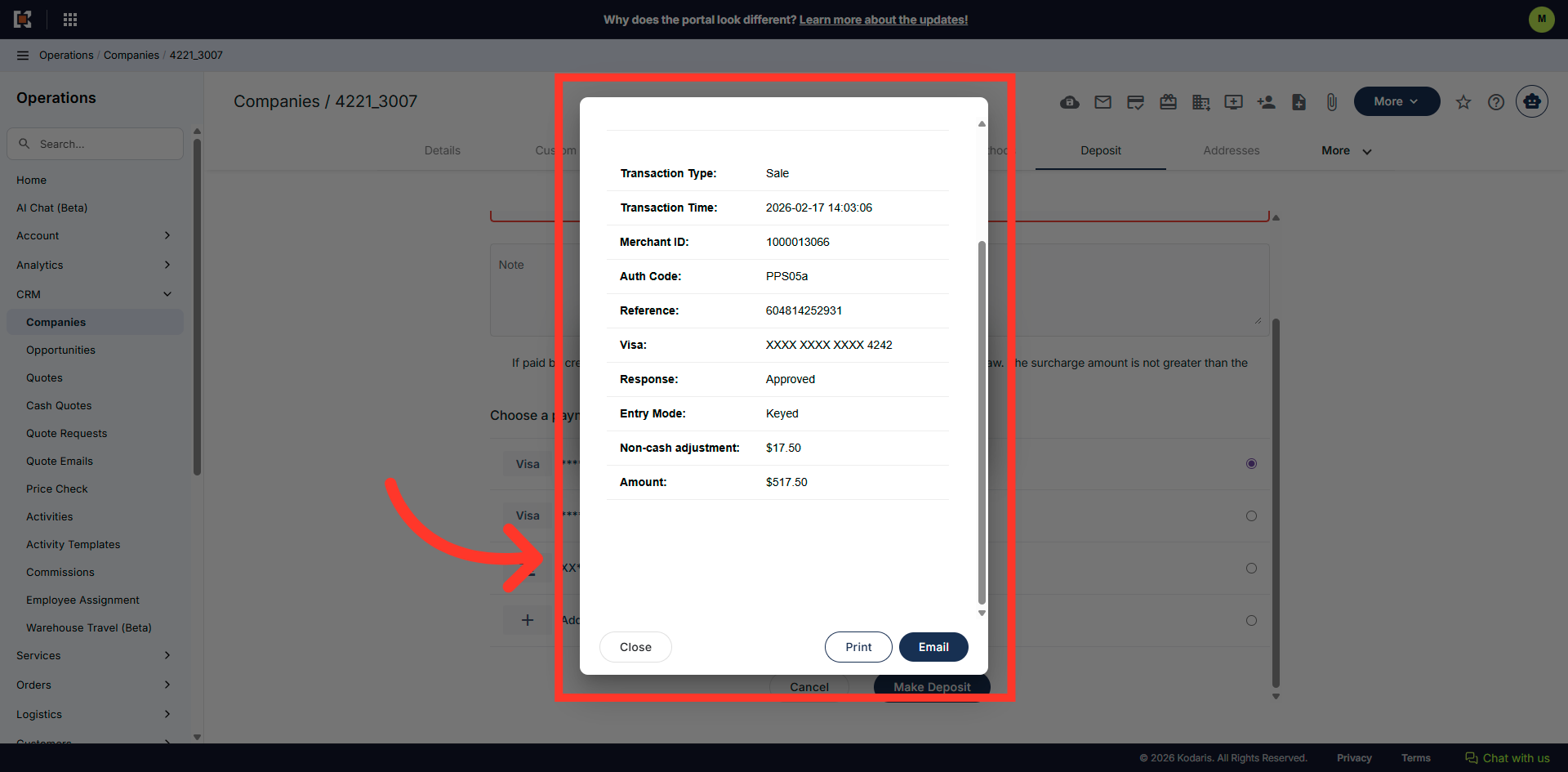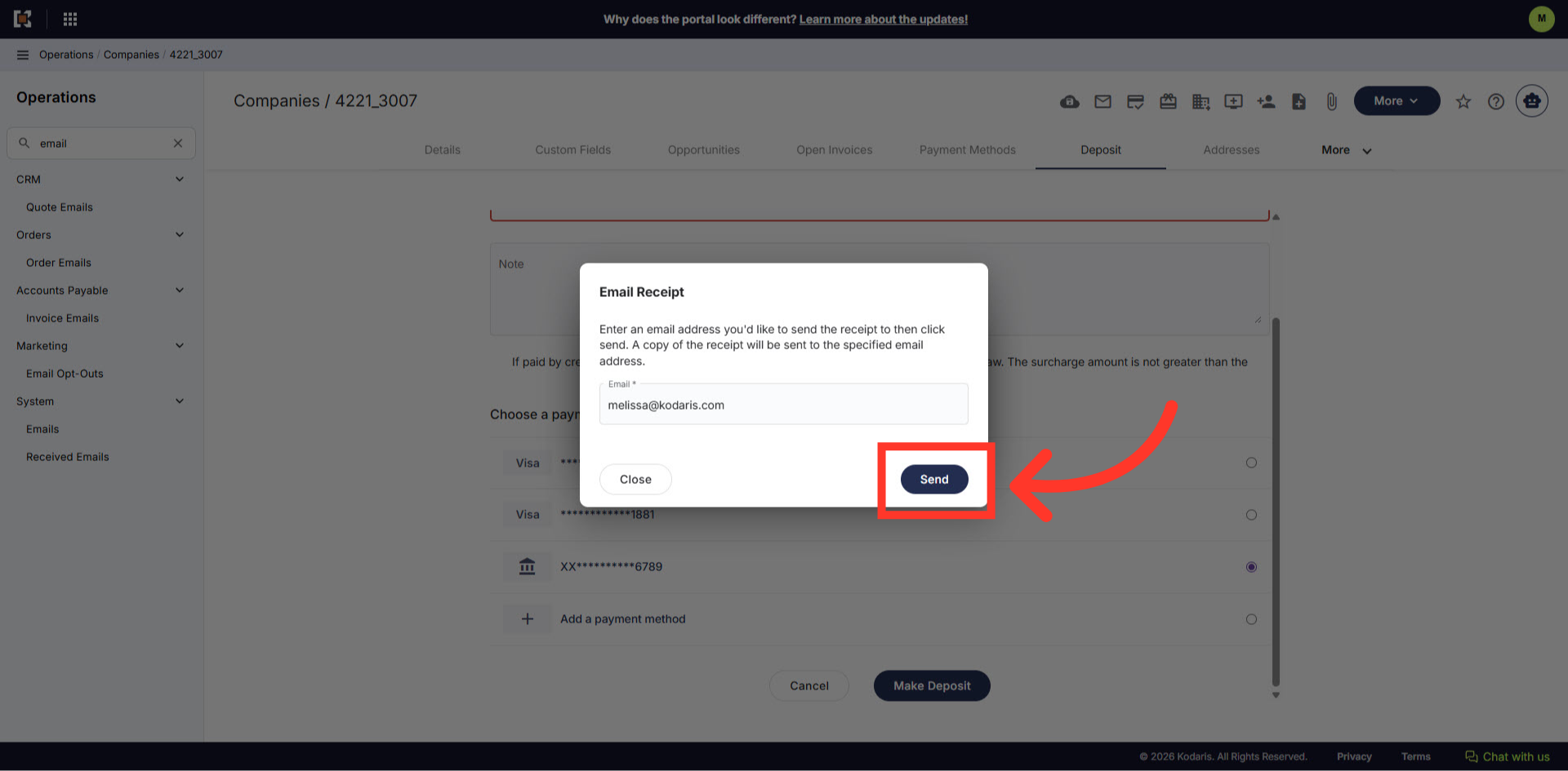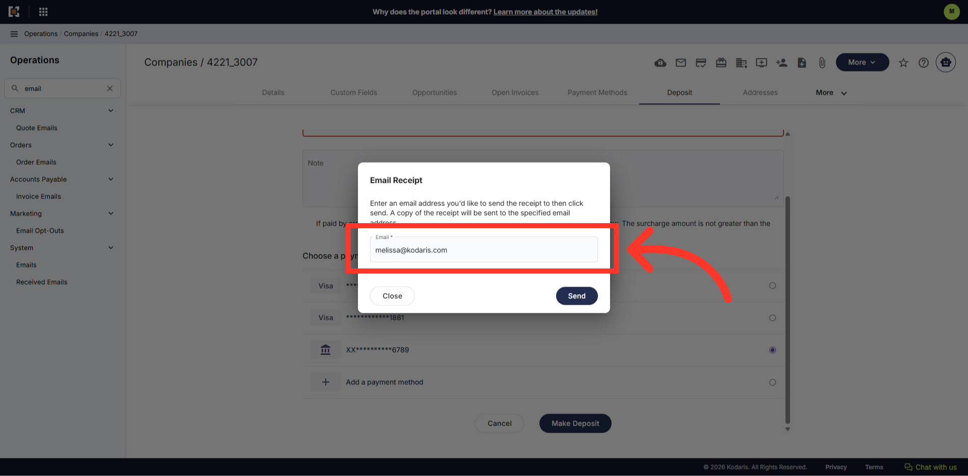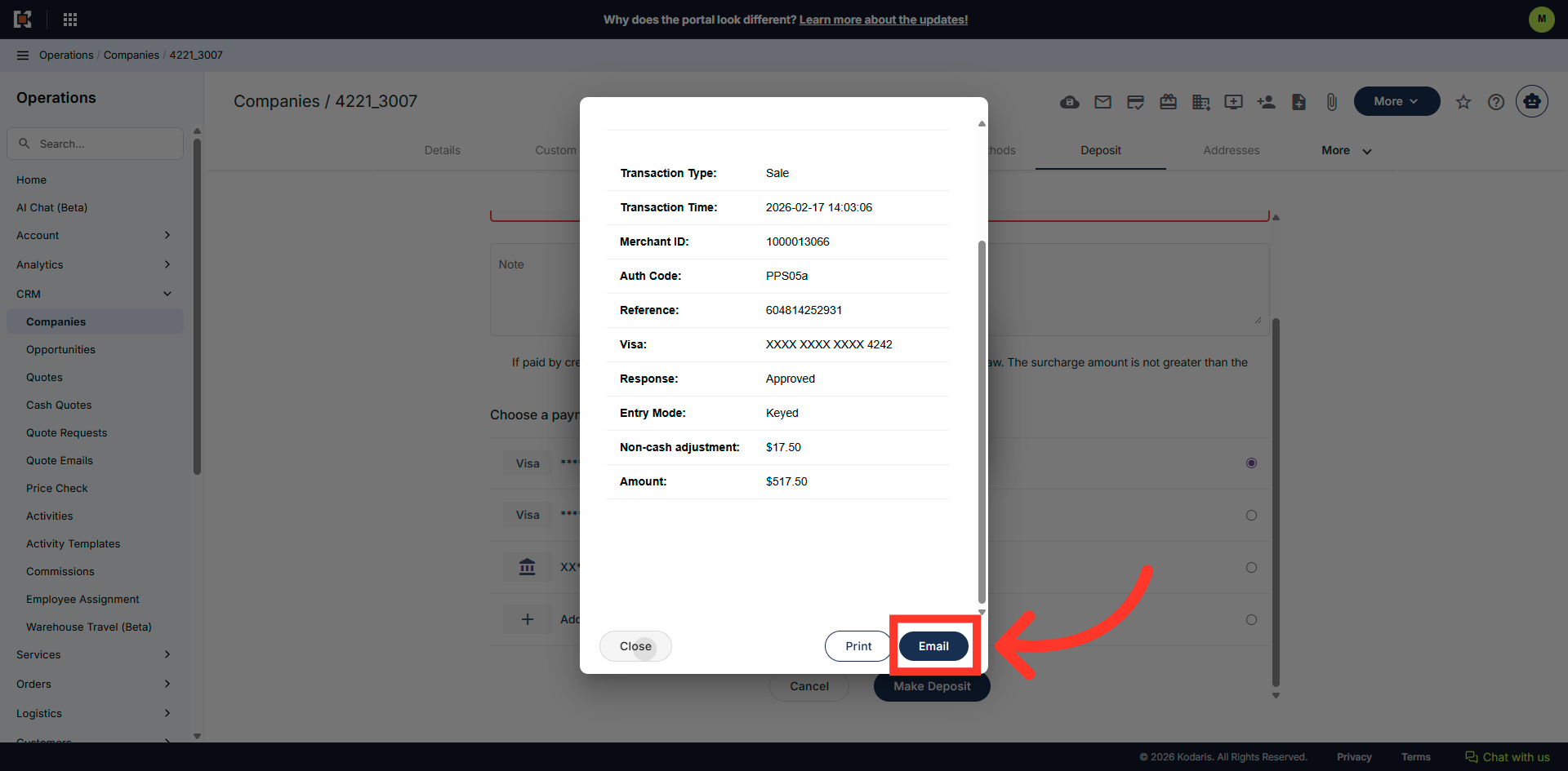 To initiate a deposit under a company, navigate to the "CRM" section in the Operations Portal.