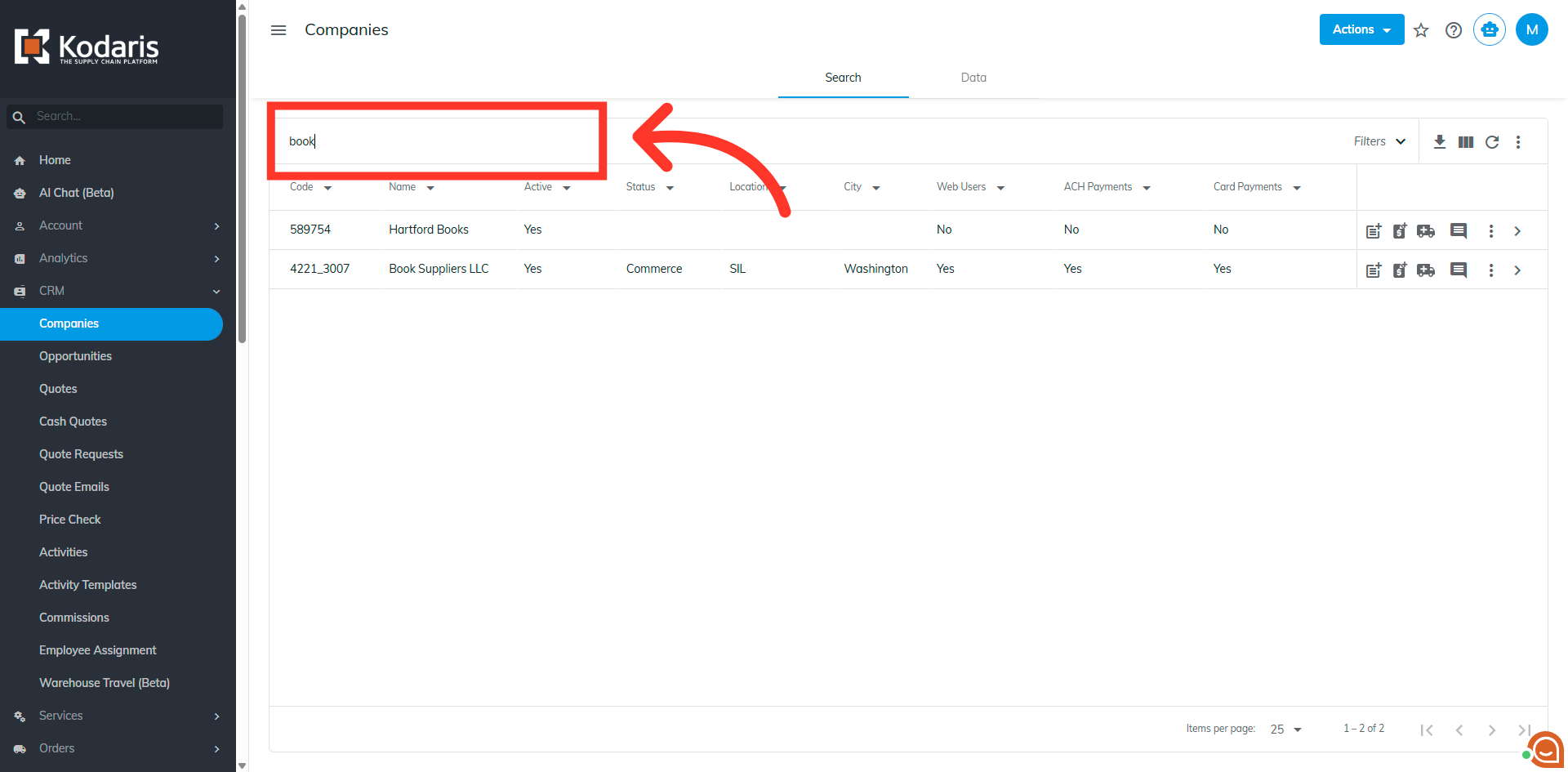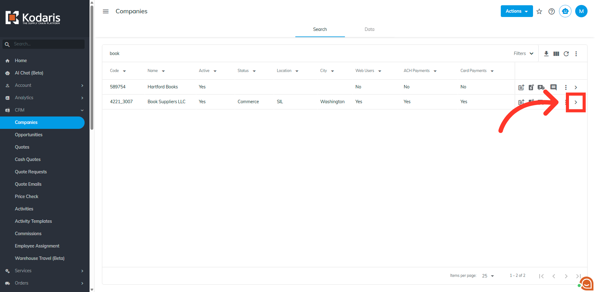 Search for a company. You can enter the company name or code in the "Search..." field to search.