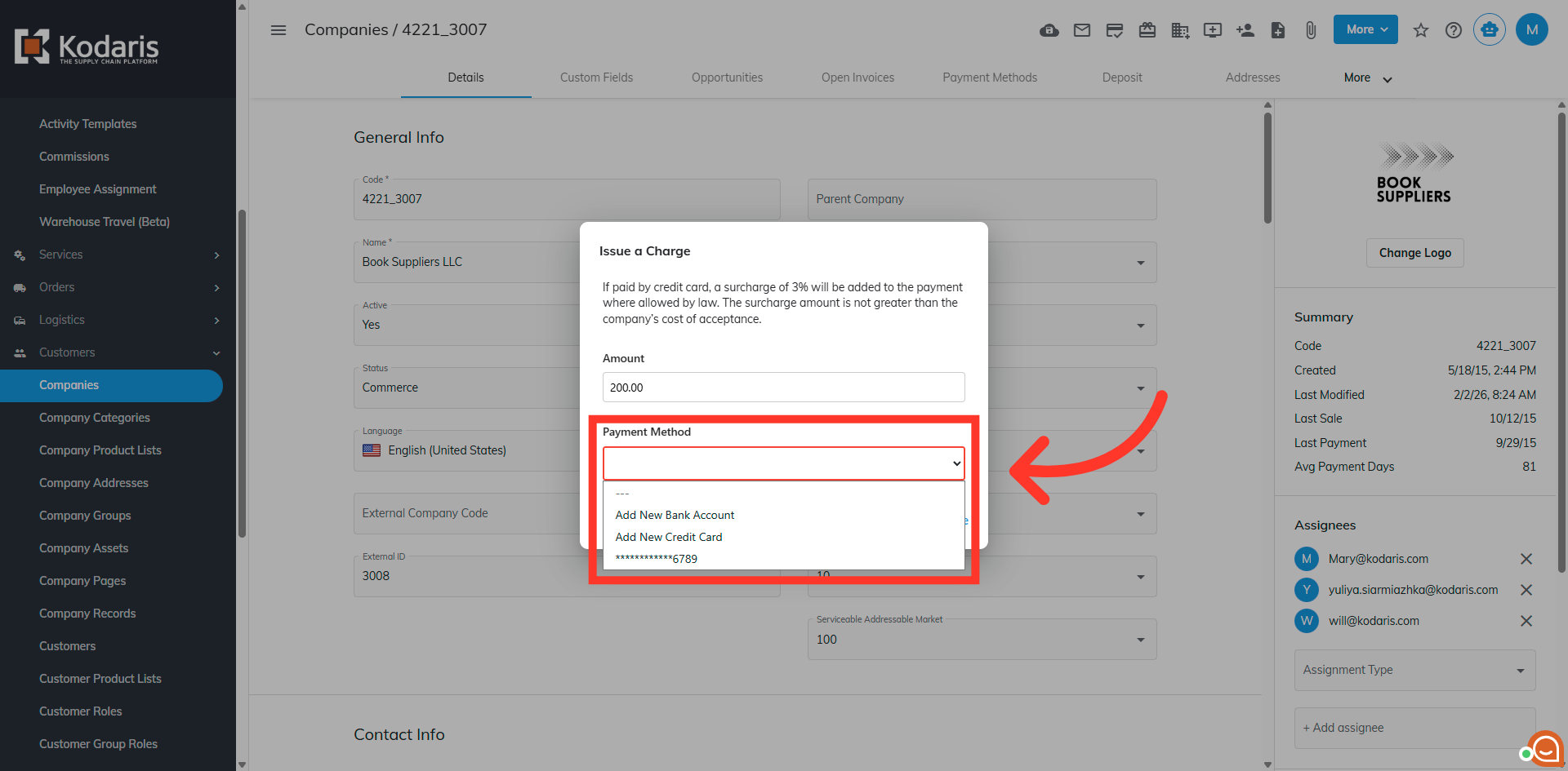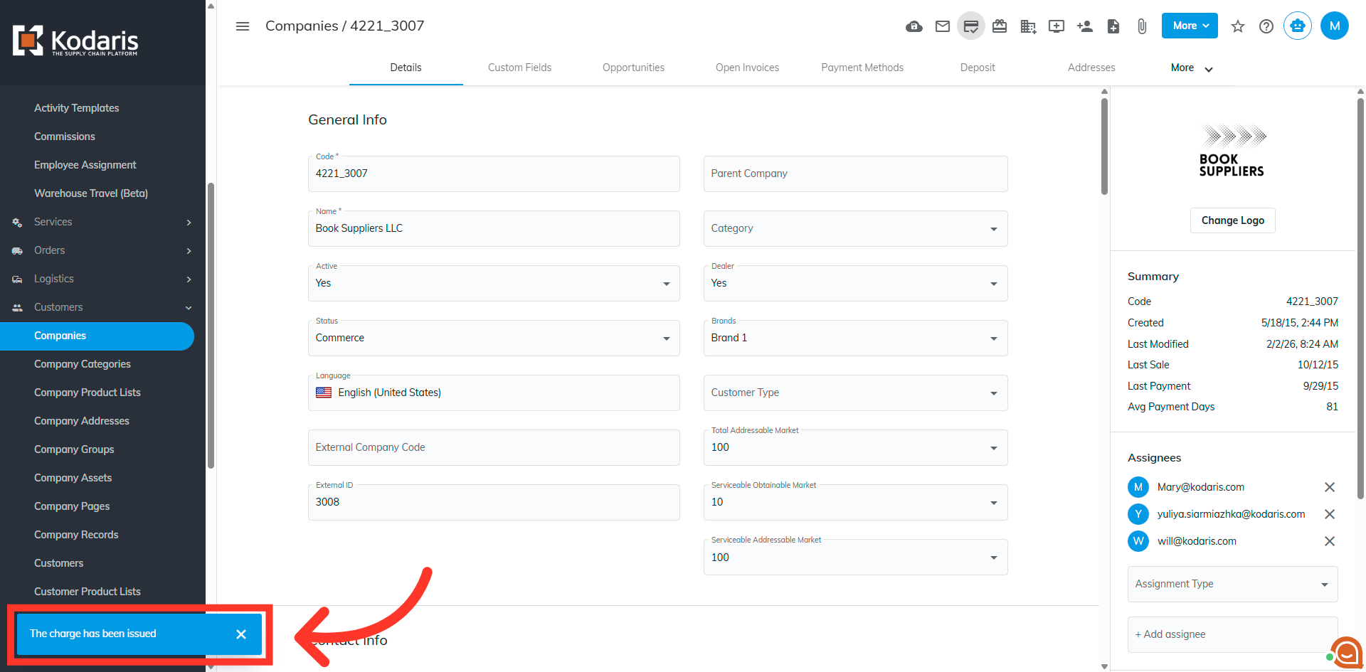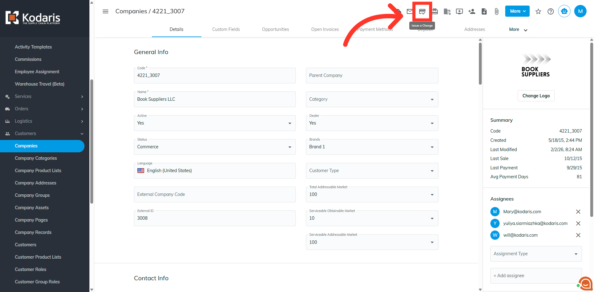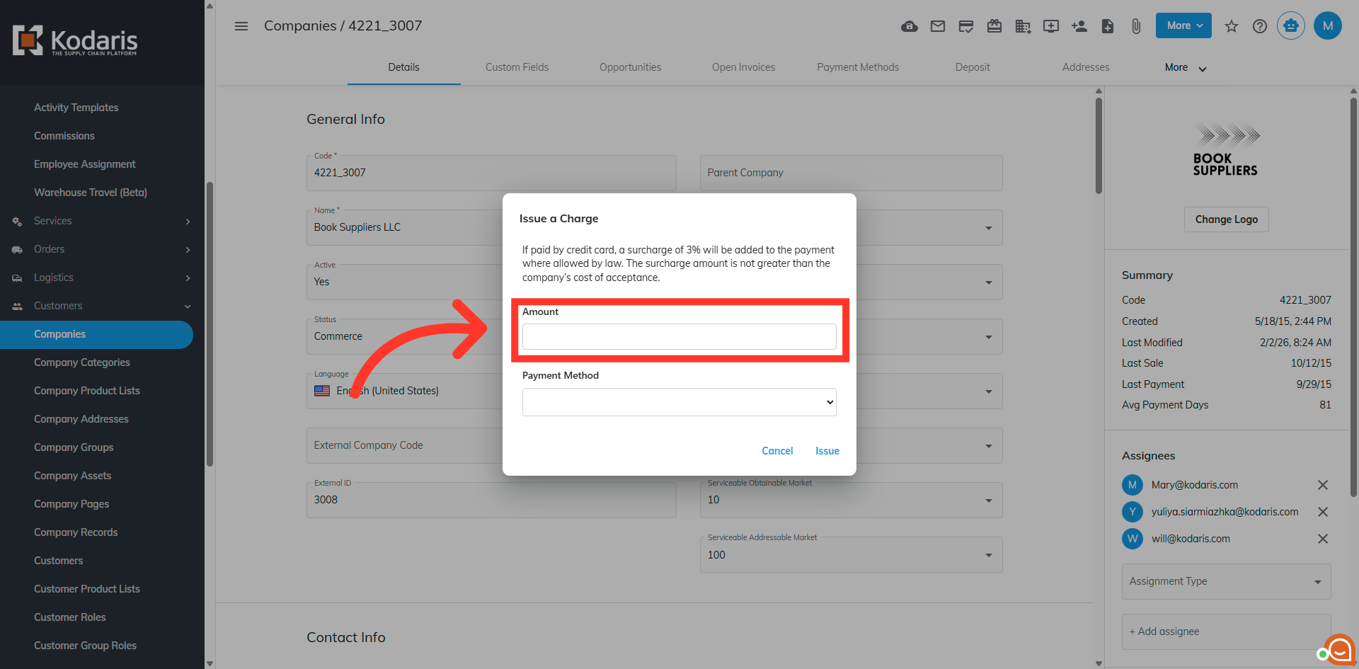Then, click "Issue" to issue the charge to the company.