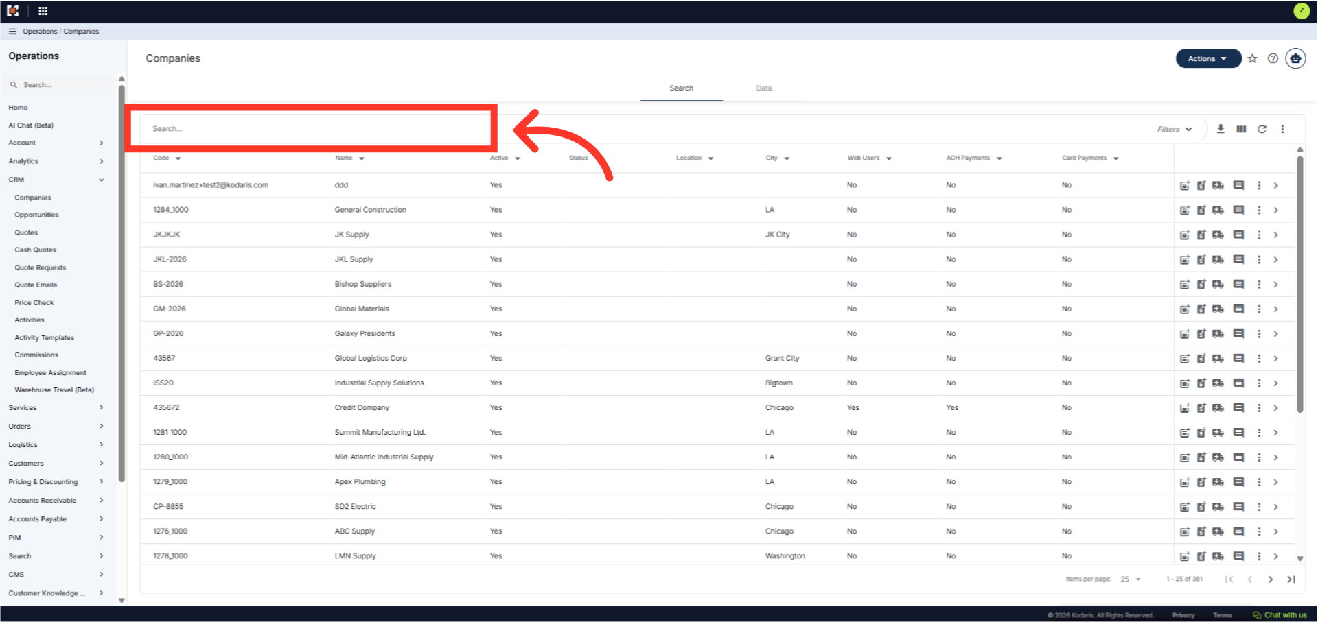 You can quickly search for a company by entering a company code or company name in the search box. In this example we will search by entering a company name.