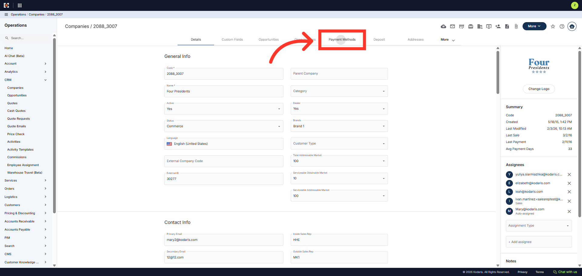 Then, click the "Payment Methods" tab to view customer vaulted payment methods.