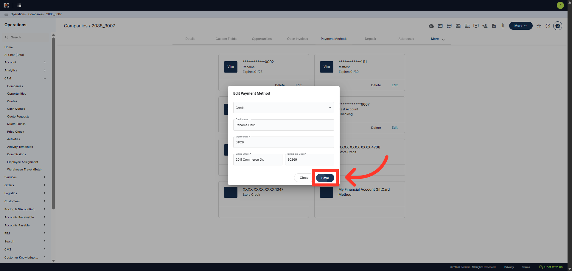 Then, click "Save" to apply your changes and update the payment method details.