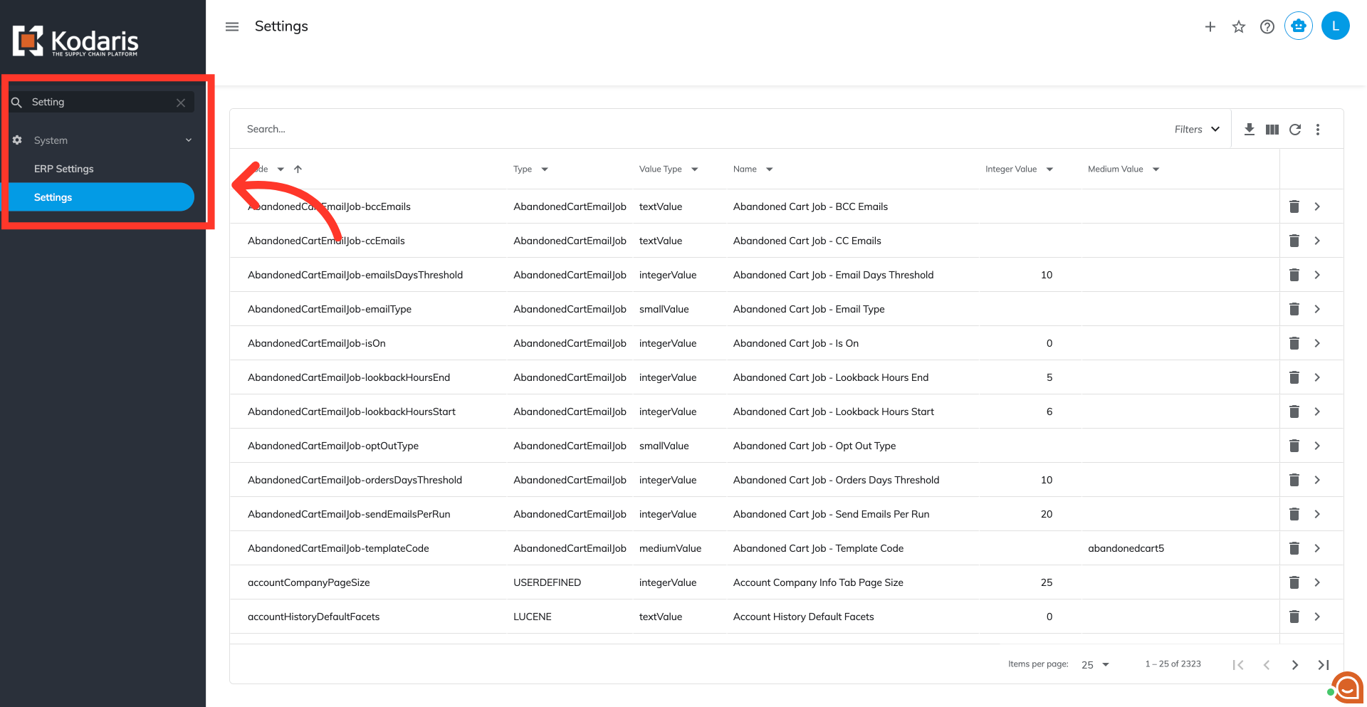 To configure the system to automatically generate and update "Recently Ordered" catalog for customer accounts daily, based on their past order history, use the search bar or navigate to the "Settings" screen within the "Systems" section of your operations portal. In order to access "Settings" you will need to be set up either as an "administrator" or a "superuser", or have the appropriate roles: "settingEdit," and "settingView"