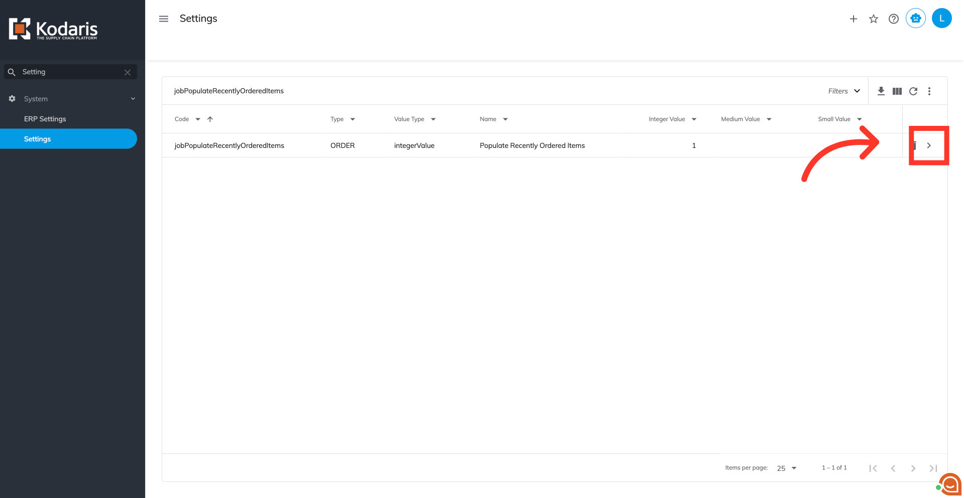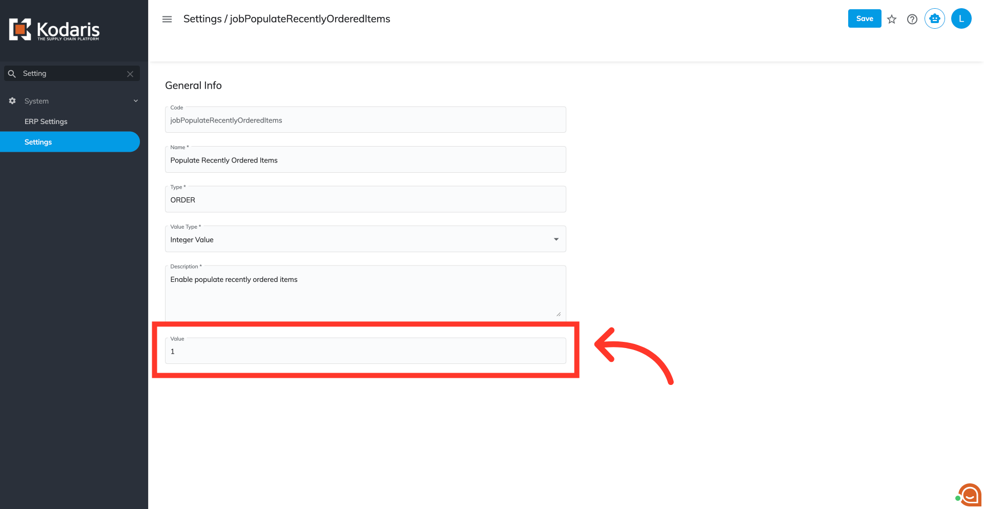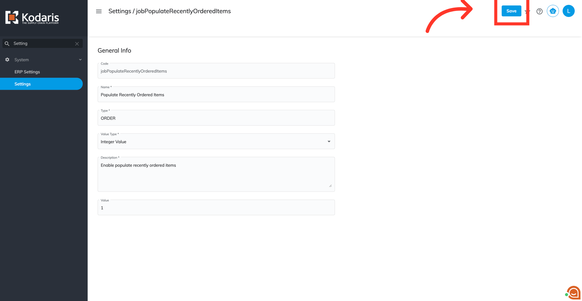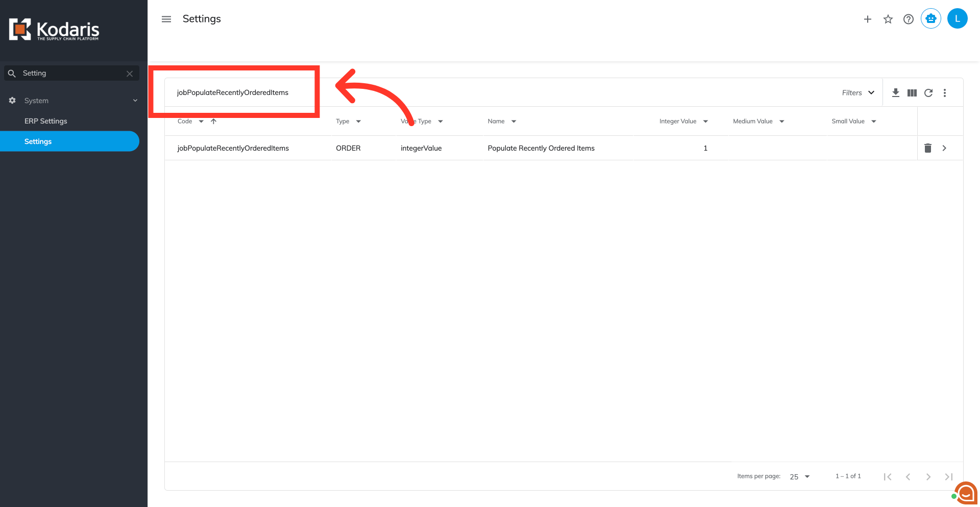 Use the search bar to search for the setting named "Job Populate Recently Order Item" setting.