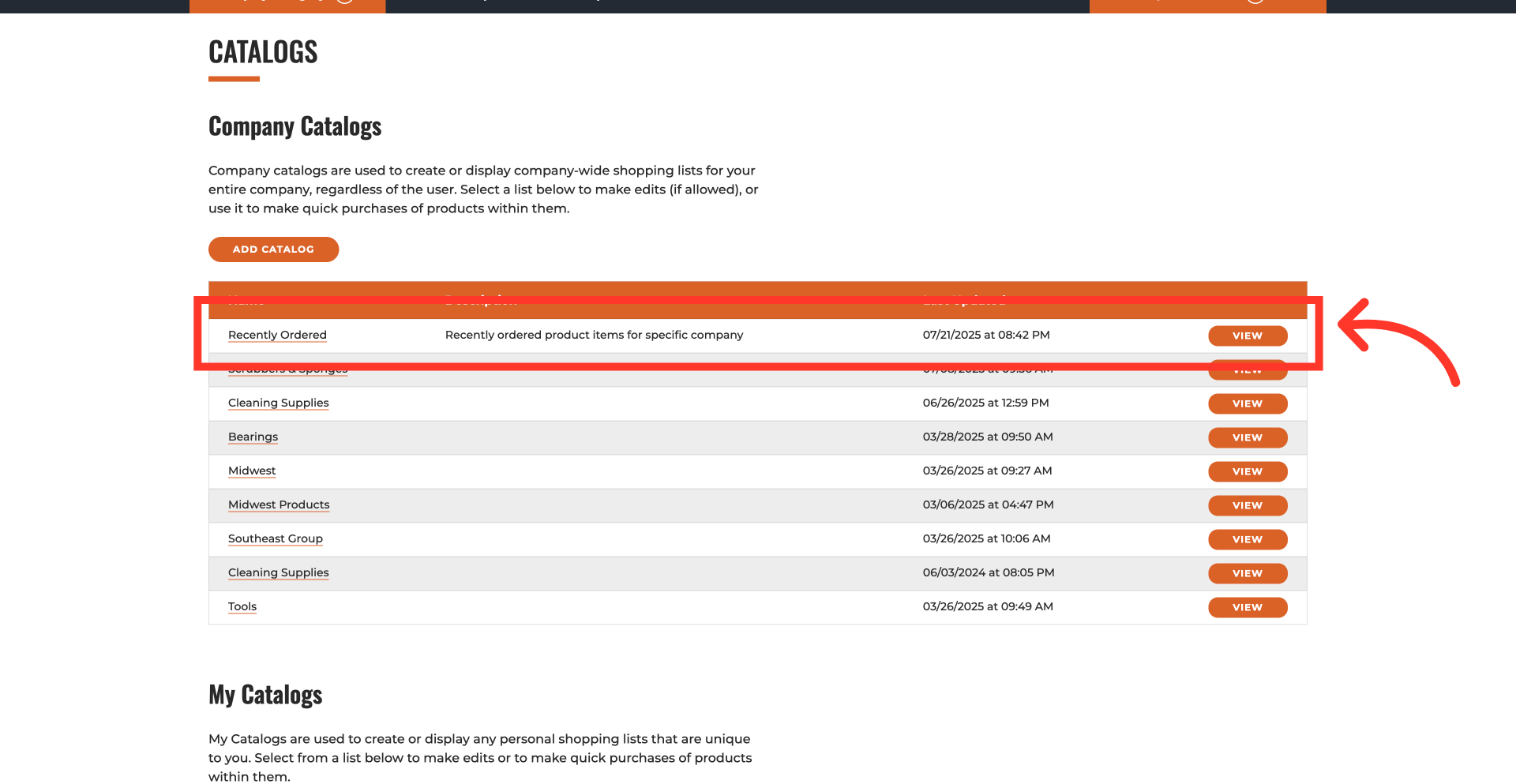 The generation process will take some time. To verify the "Recently Ordered" catalog is set up on your customer's site, check the "Company Catalogs" section of the "Catalogs" screen.