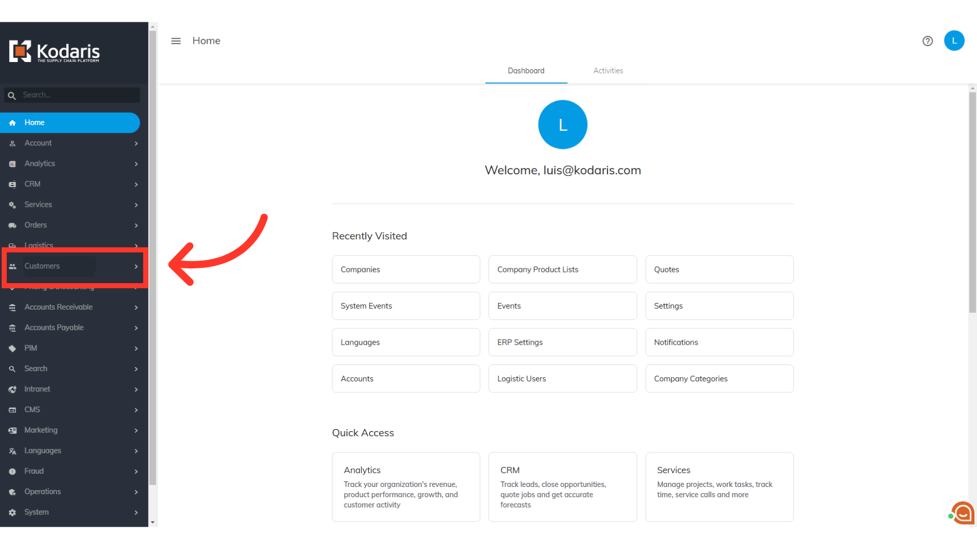To create a product list by import in the operations portal, navigate to "Customers" section.