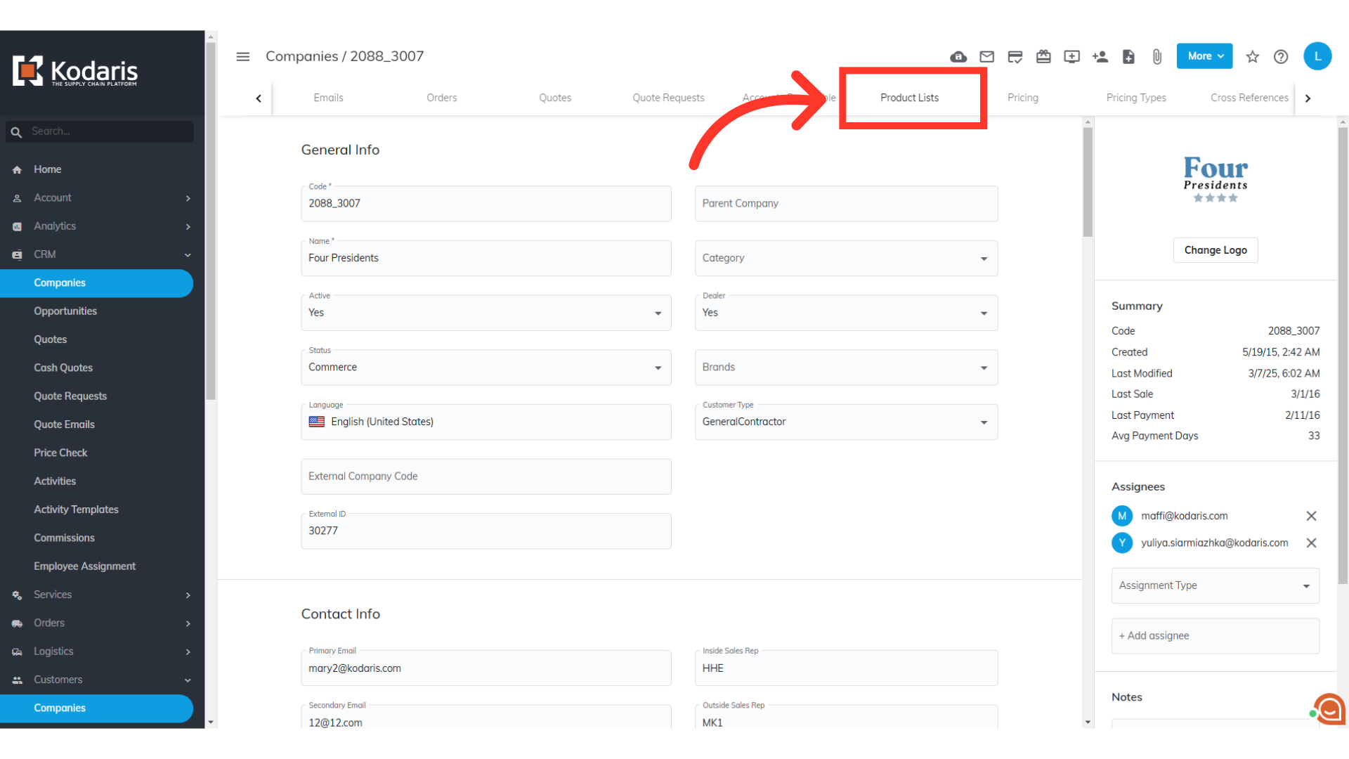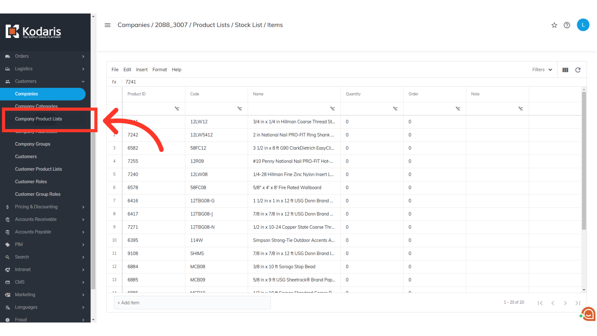 Another way to import a product list is by going to the Company Product List section. Select the "Company Product Lists" option.