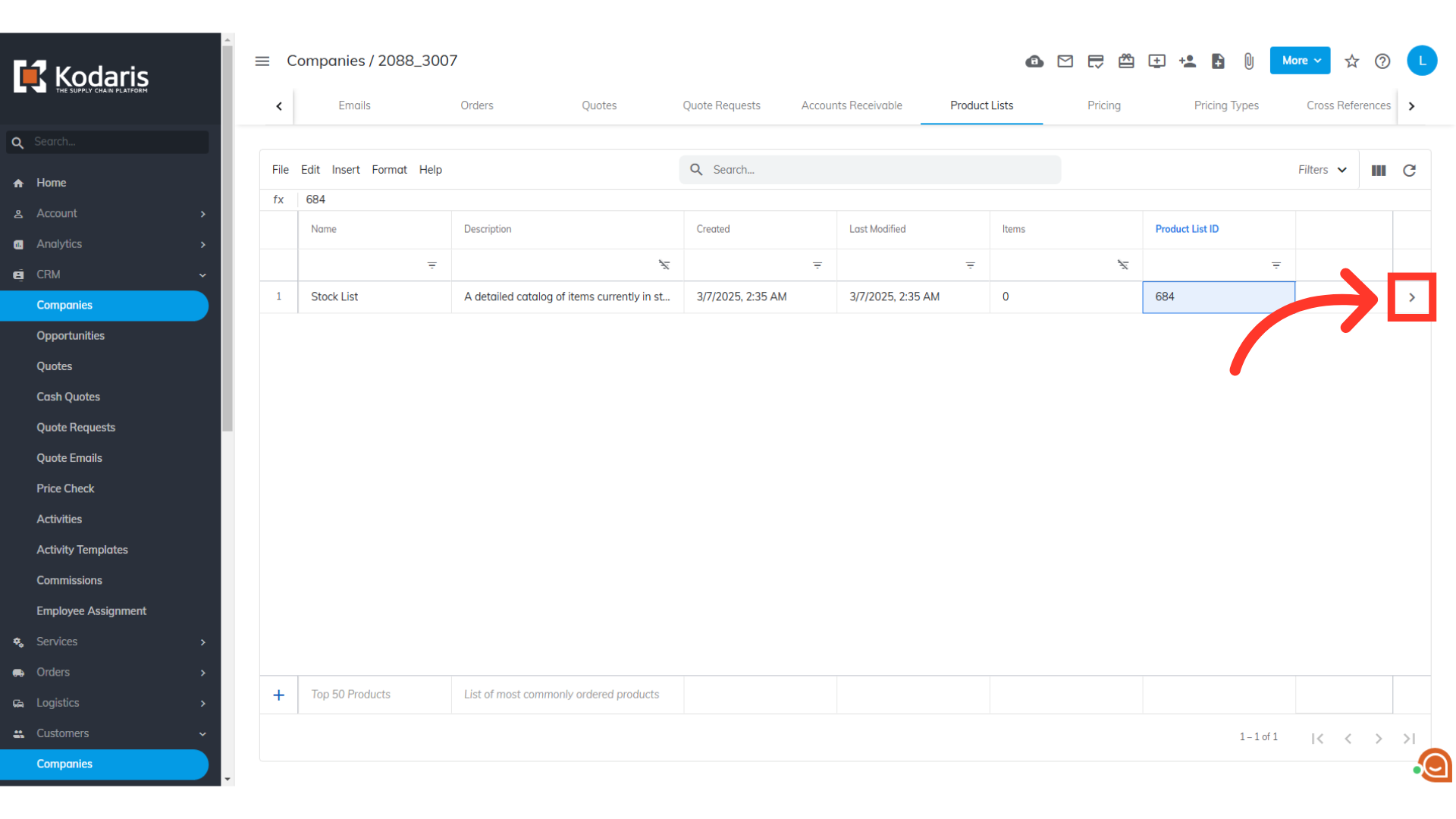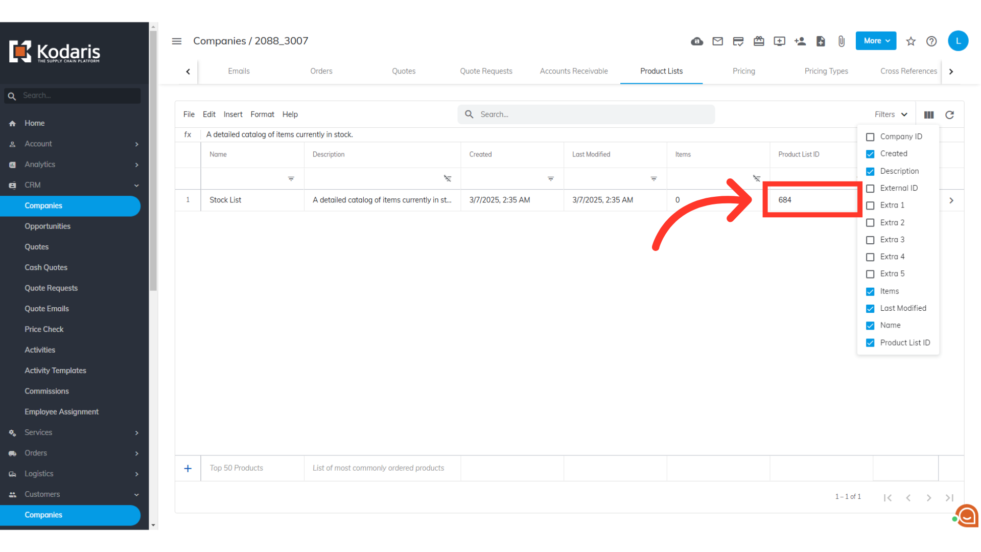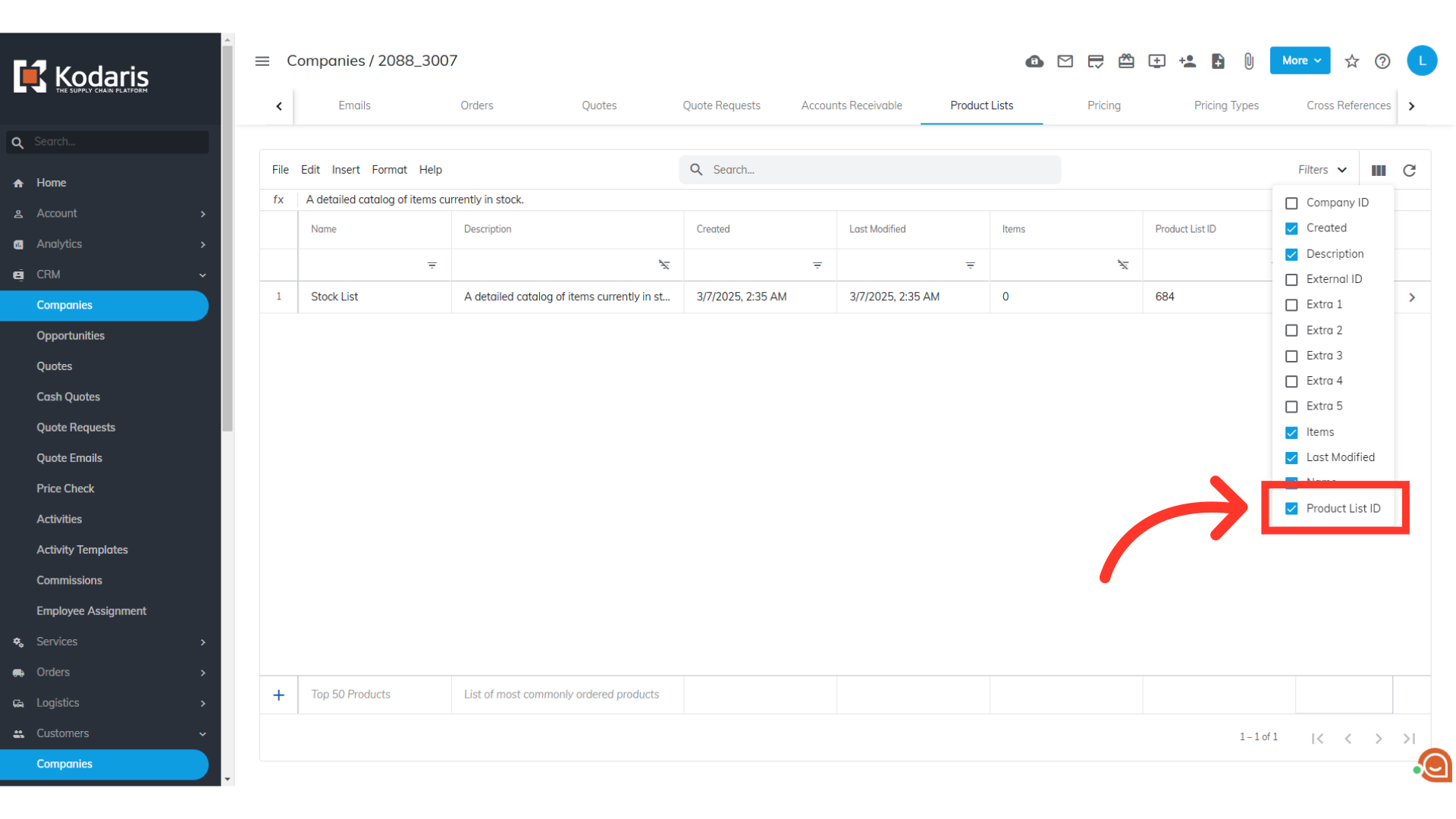 Search for the company that you would like to update. To update a product list by import, we will need add two columns to your view. One to identify which products to import, and the other to identify which product list they go to.