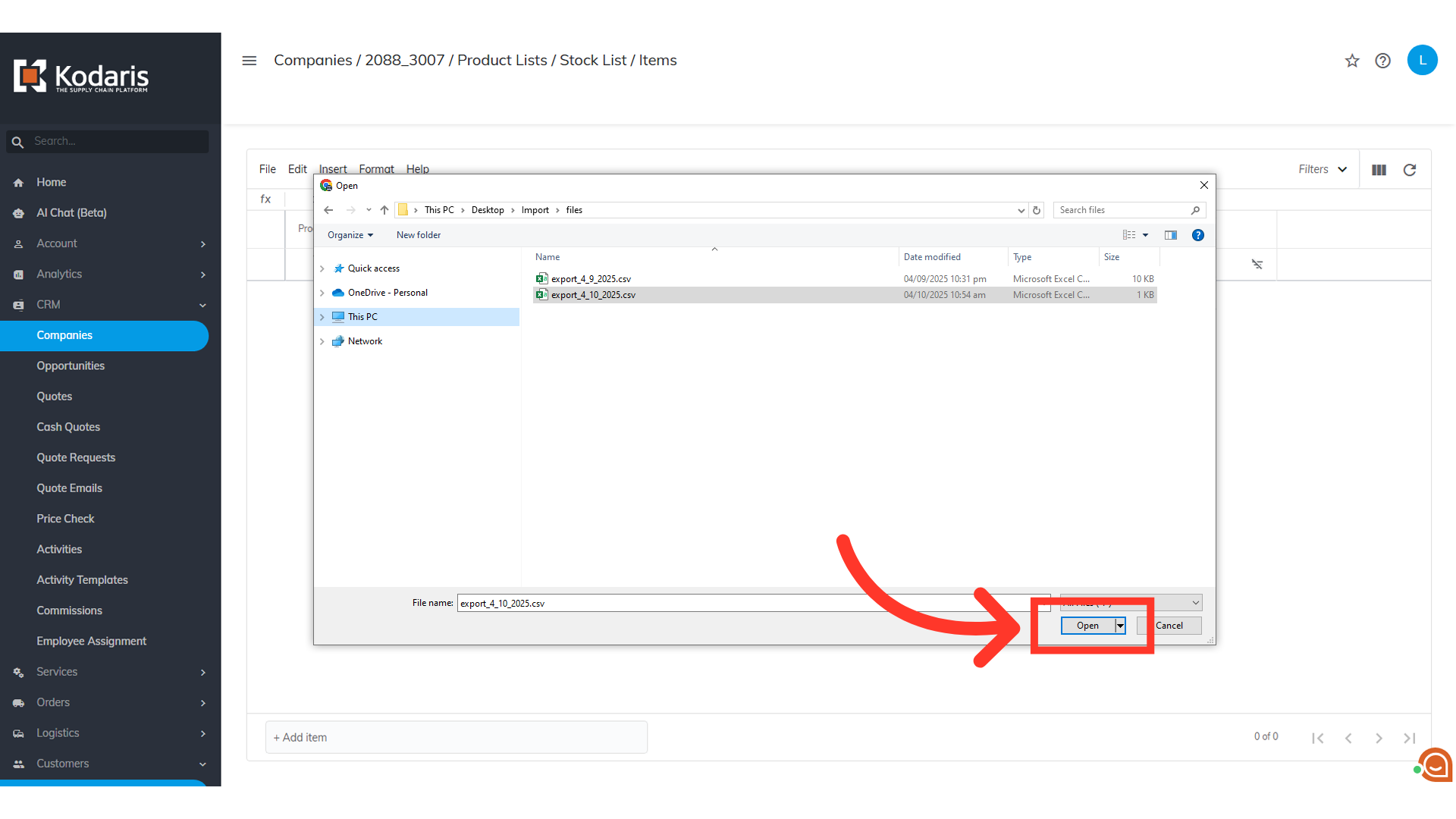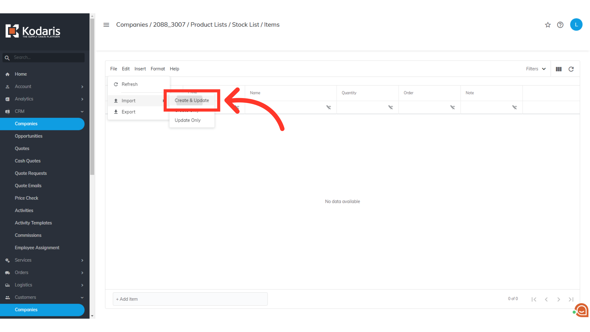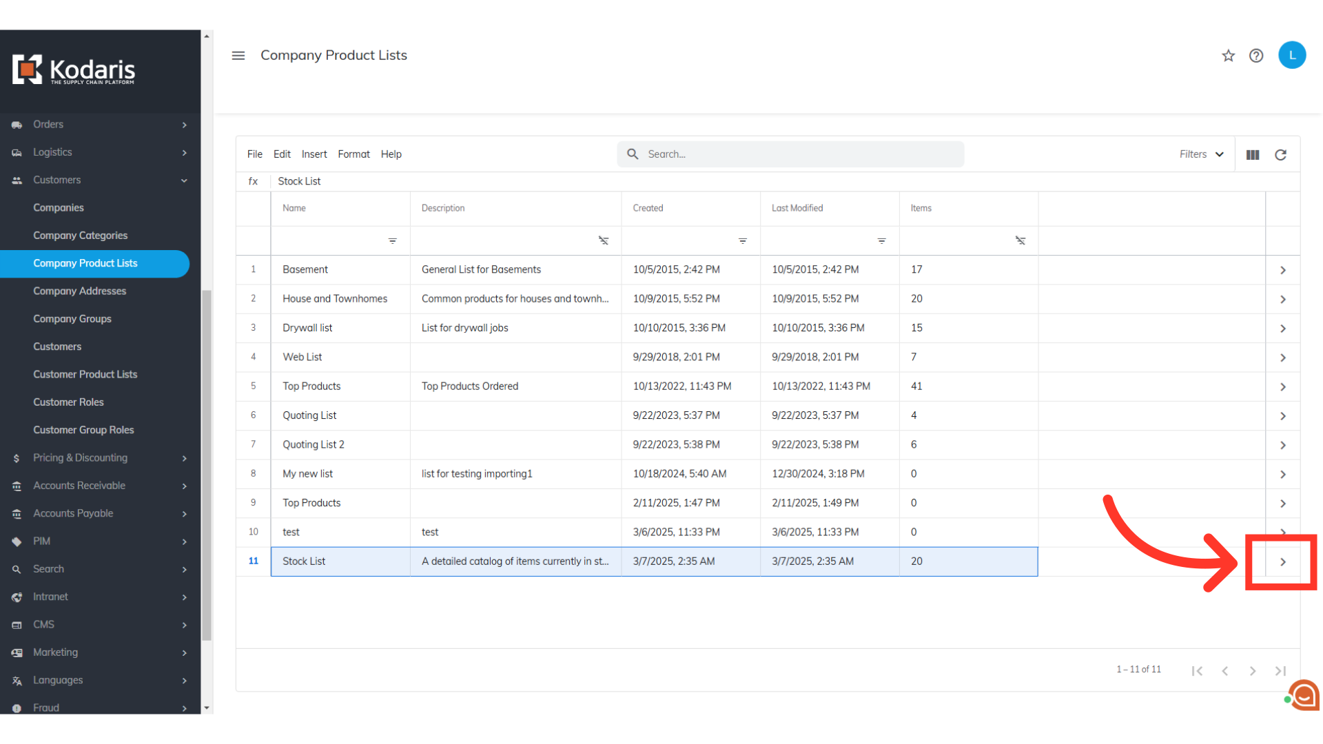 Search for the company that you would like to update. To update a product list by import, we will need add two columns to your view. One to identify which products to import, and the other to identify which product list they go to.