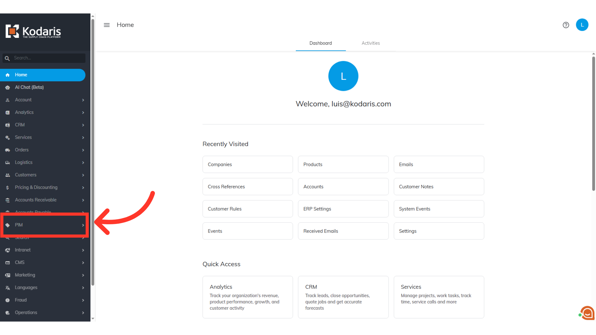 The next thing to do is to collect the products you would like to add to your product list. To do that, navigate to the "PIM" section.