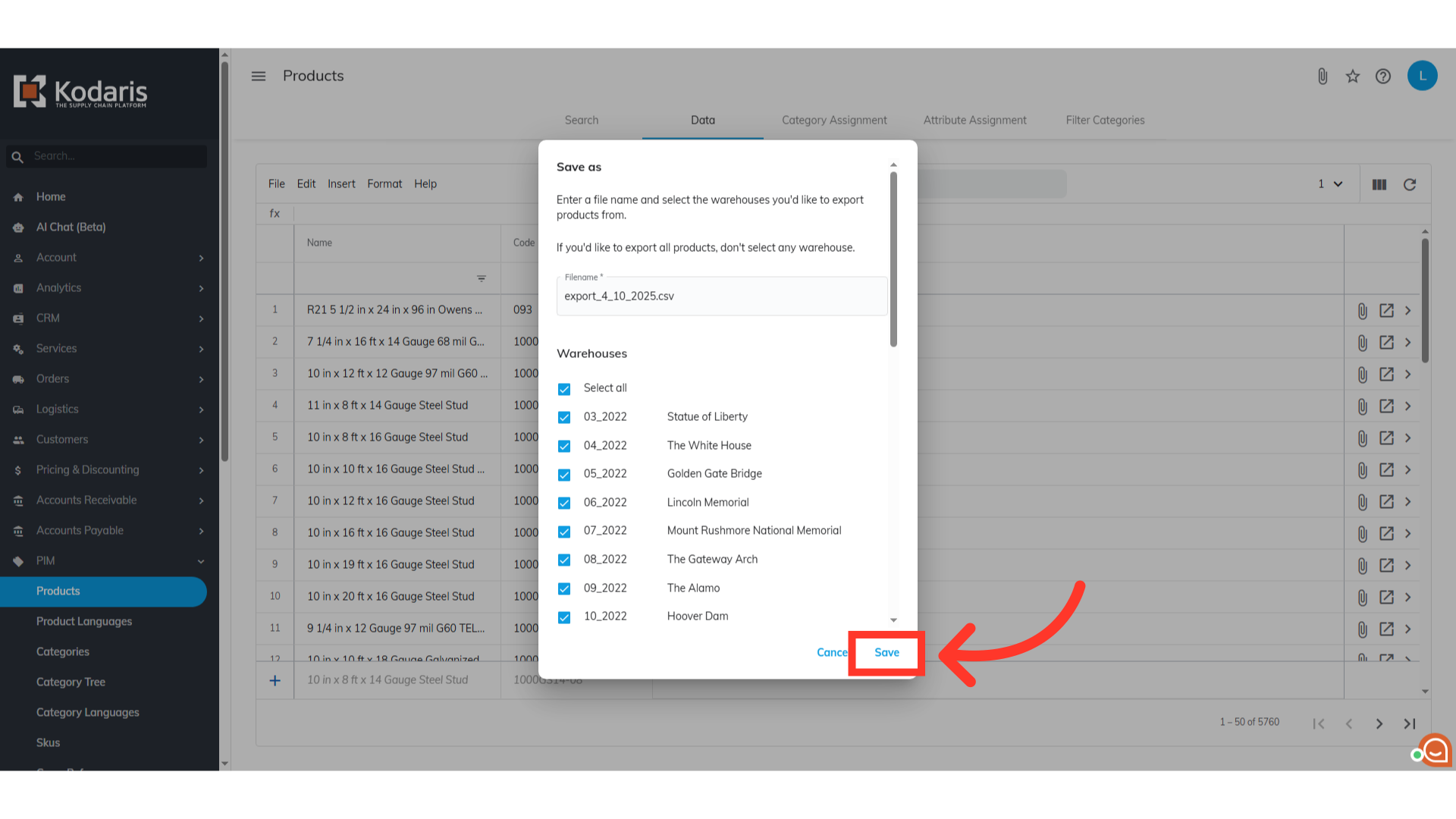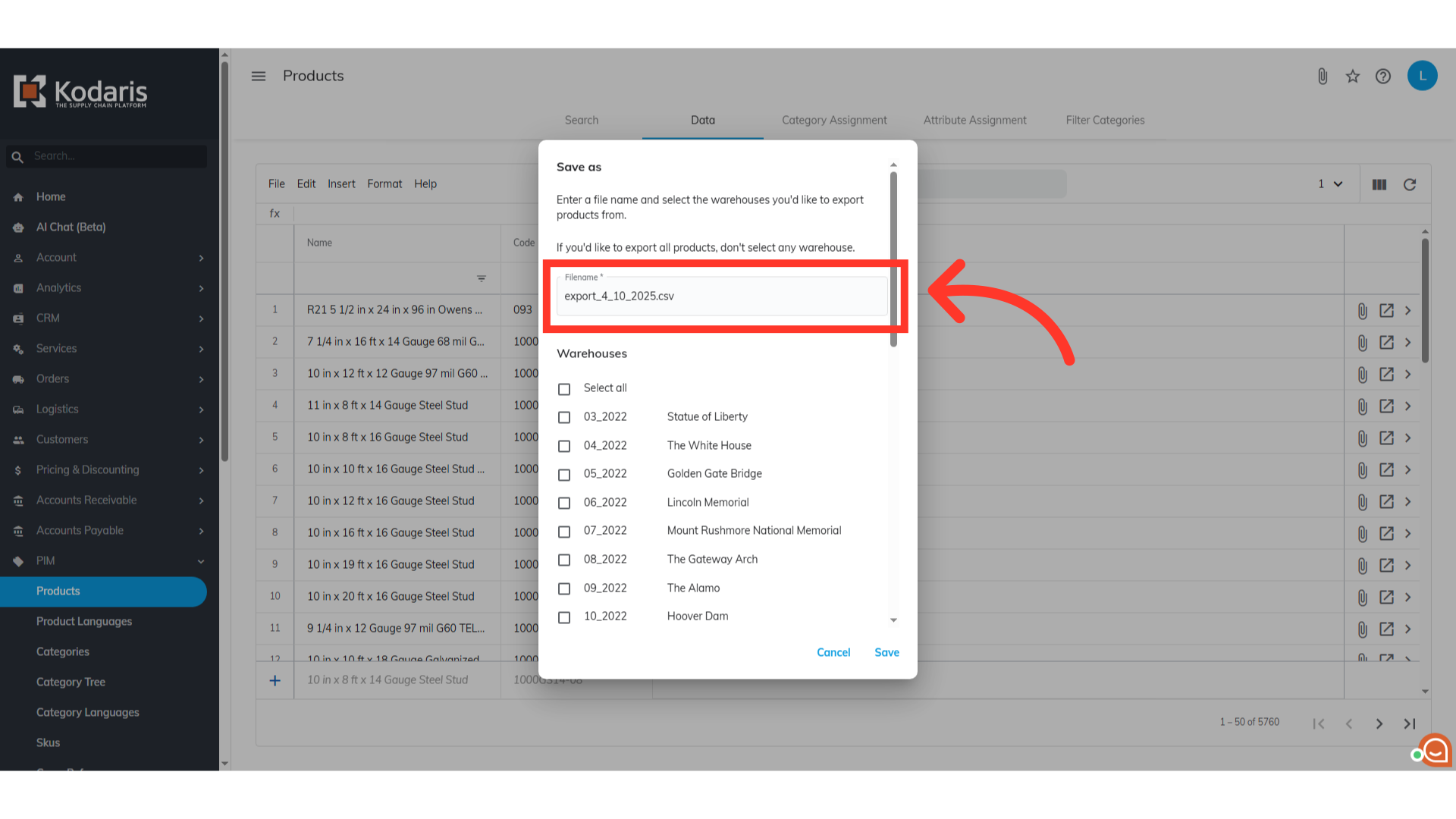 If you would like, you can also narrow down the data before exporting by using the search bar or the filters.