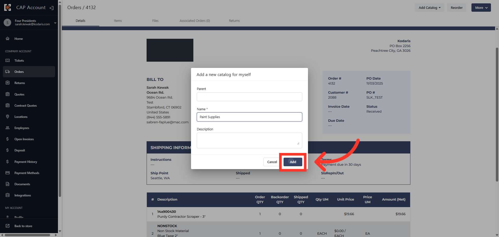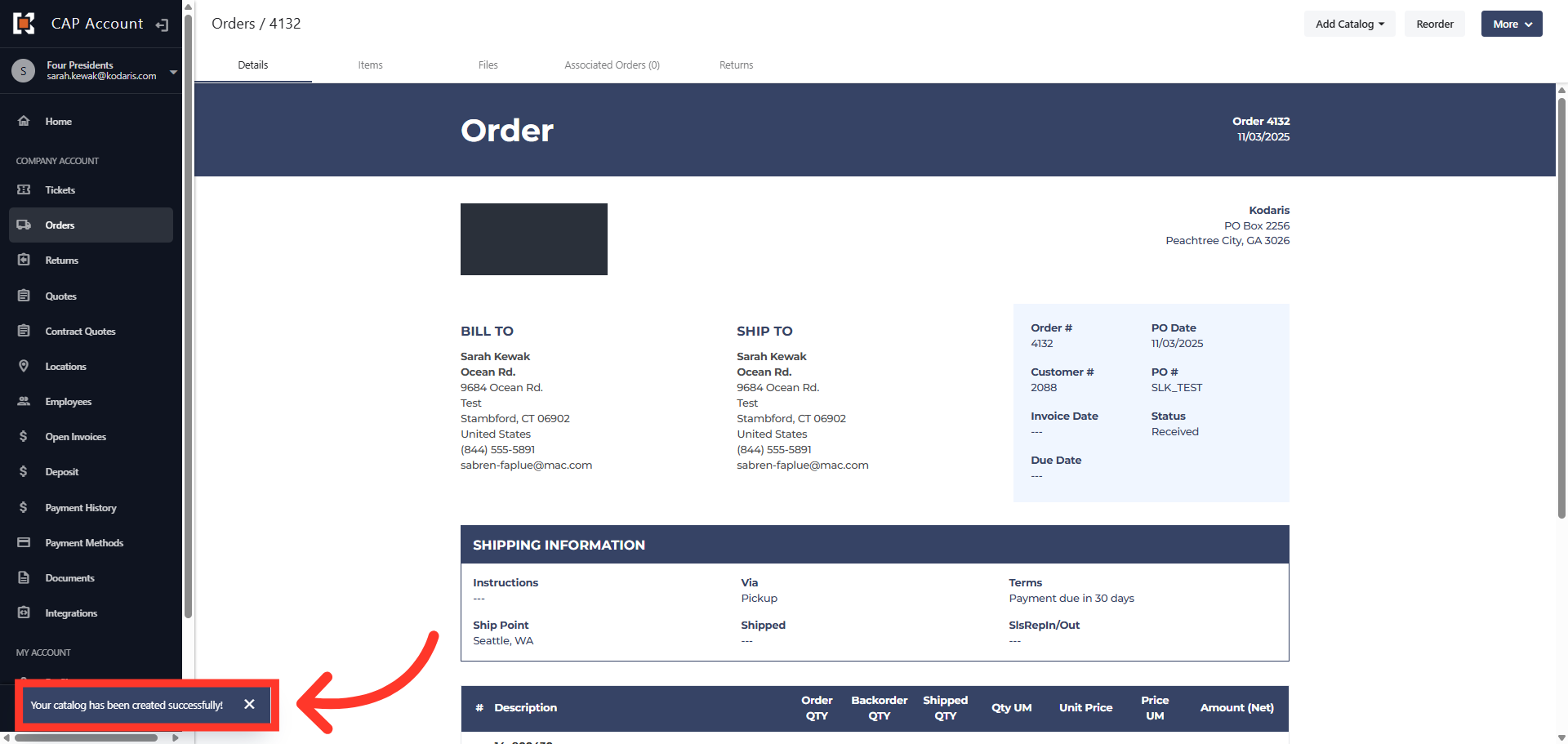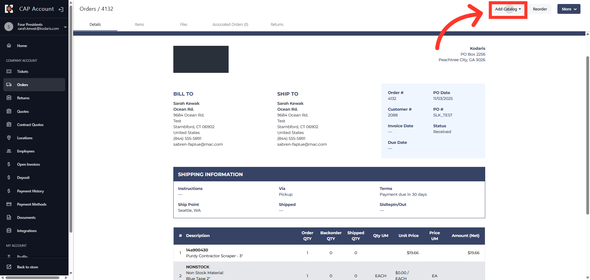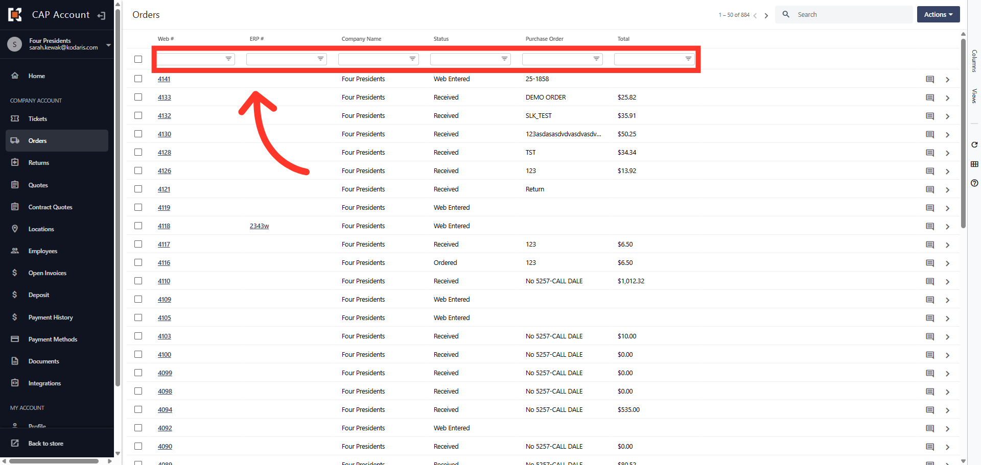 In order to access "Orders", you will need to have the role of "Company Admin", "View All Orders", or "View Assigned Location Orders". Search for the order in the "Search" field.
