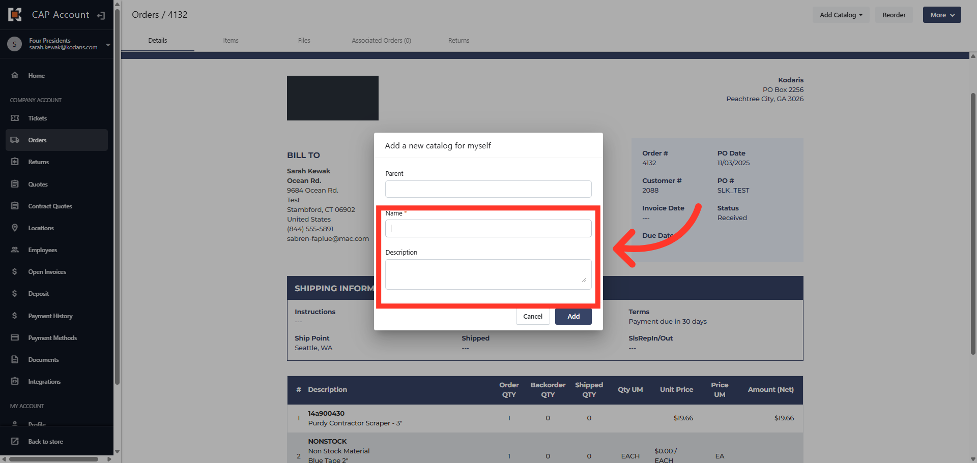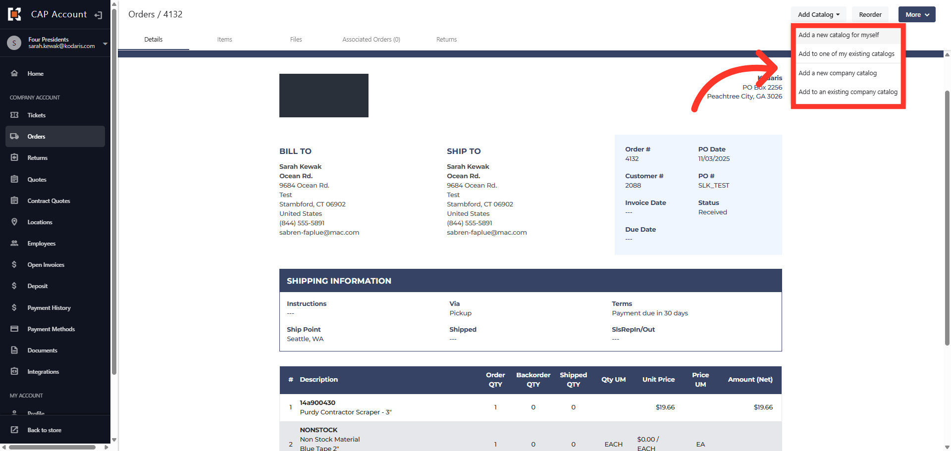 Select the catalog option you wish to use. You can choose from creating a new catalog or adding to an existing catalog for yourself or for all users in the company.