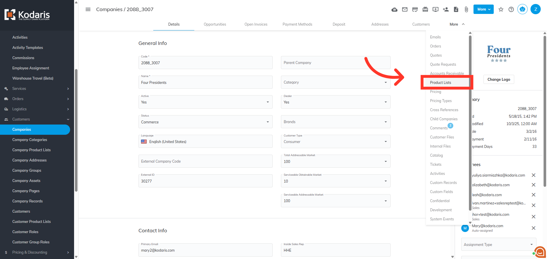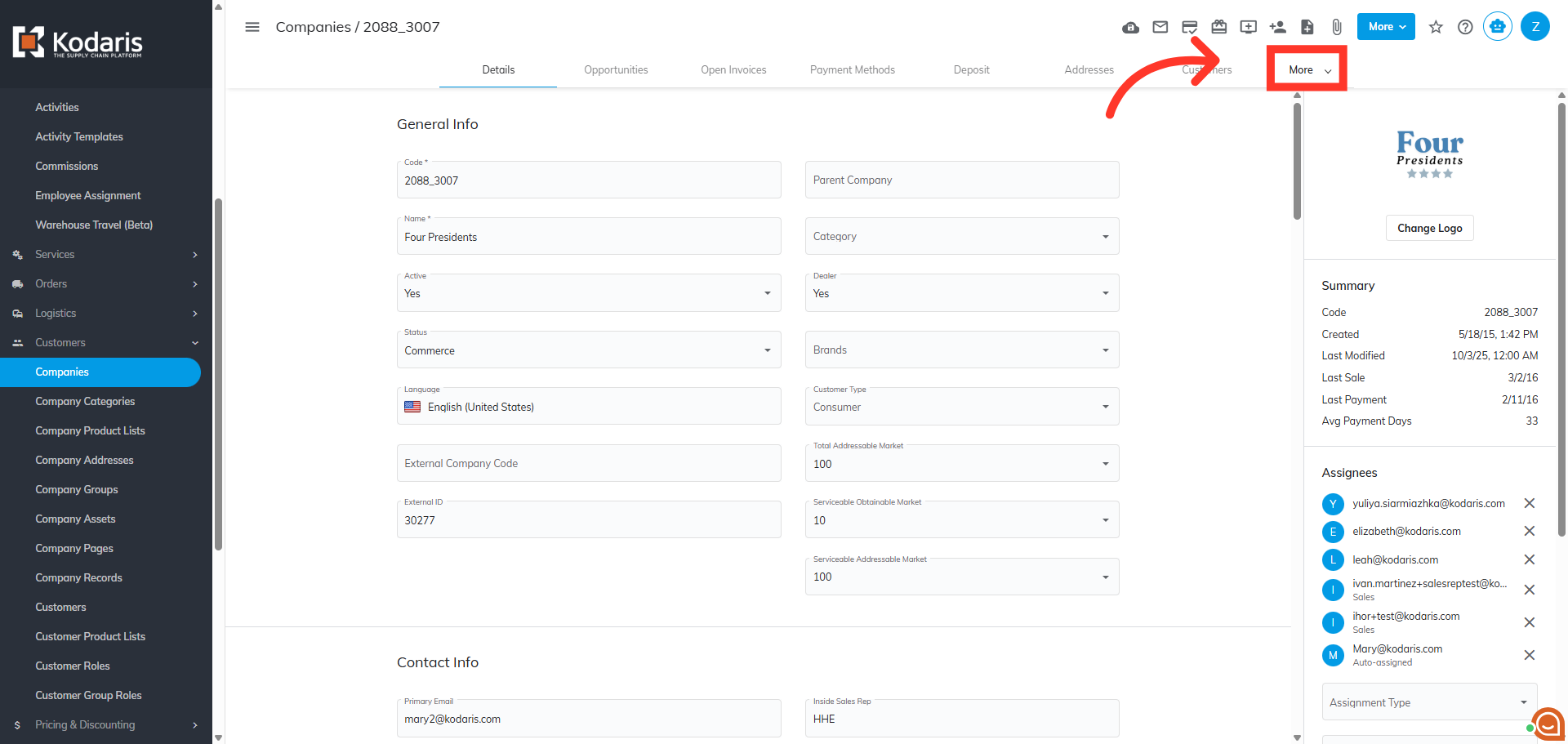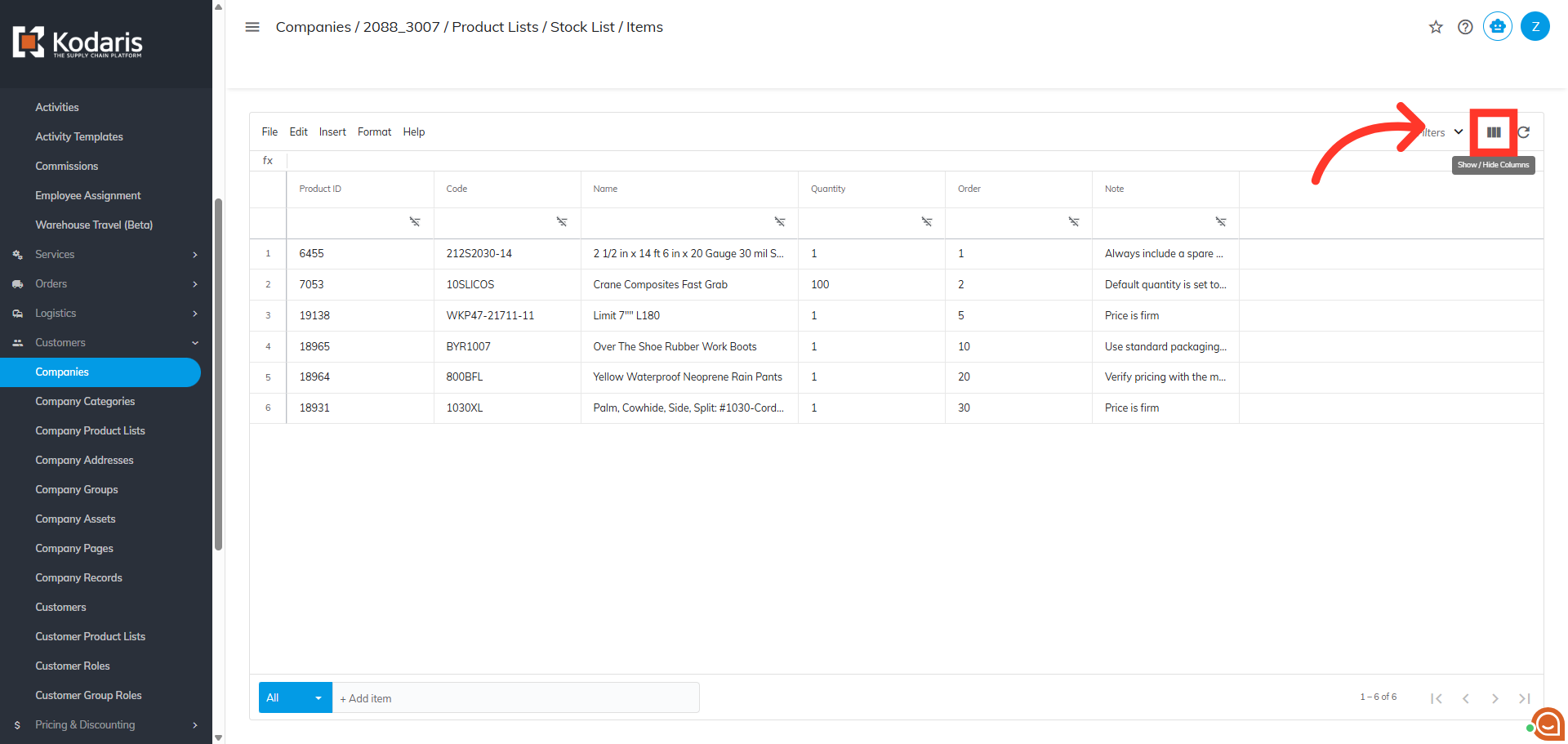 Then, click on "Companies". In order to access "Companies" you will need to be set up either as an "administrator" or a "superuser", or have the appropriate roles: "companyView", "companyEdit" , "customerView", and "customerEdit".
