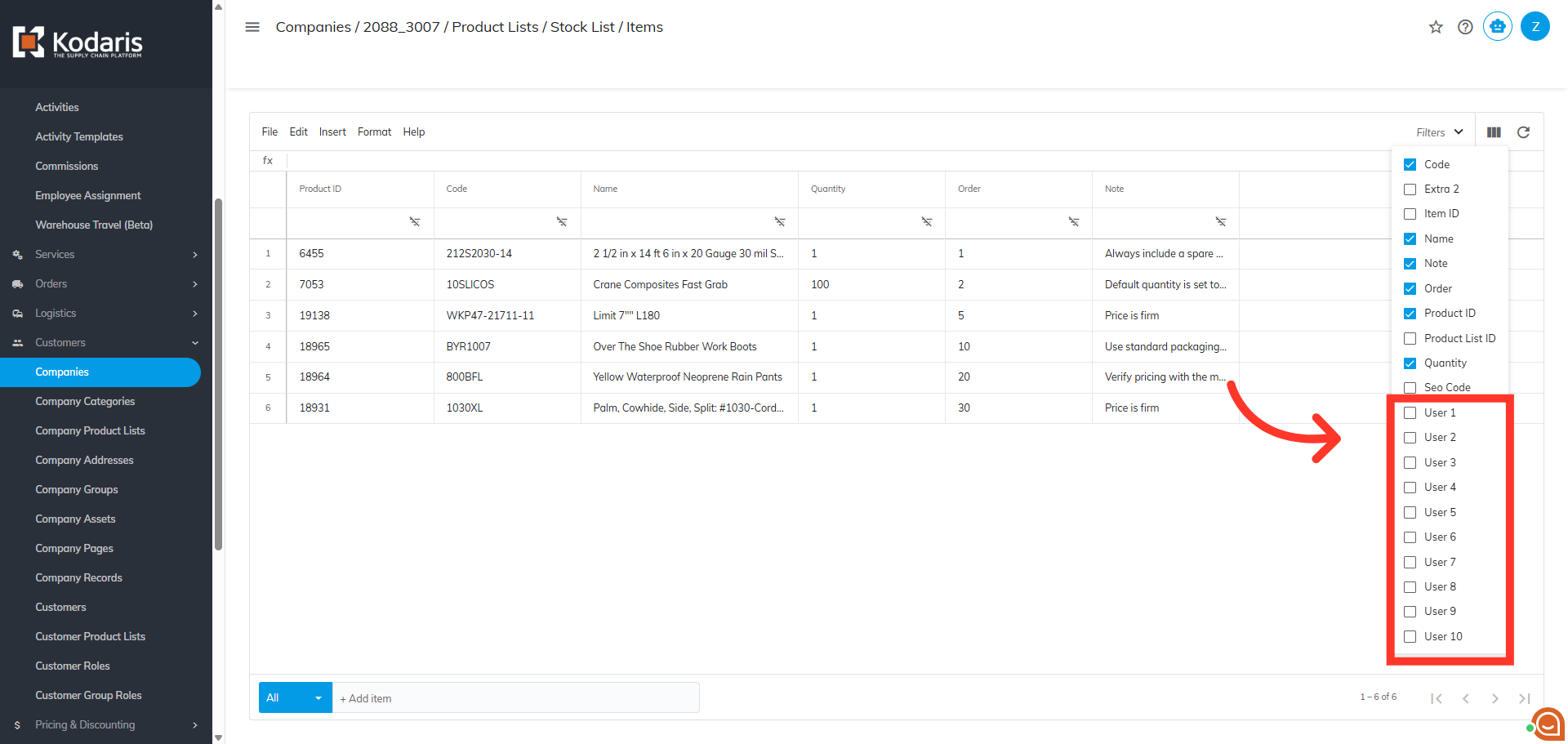 To view user fields on product lists, navigate to the "CRM" section in the Operation Portal.