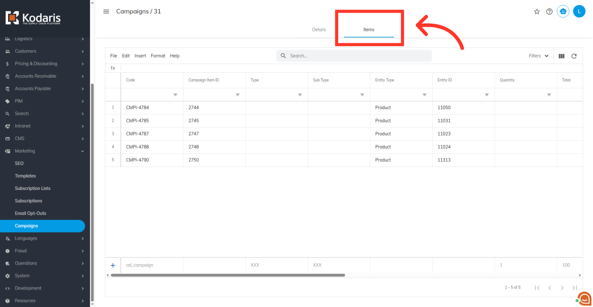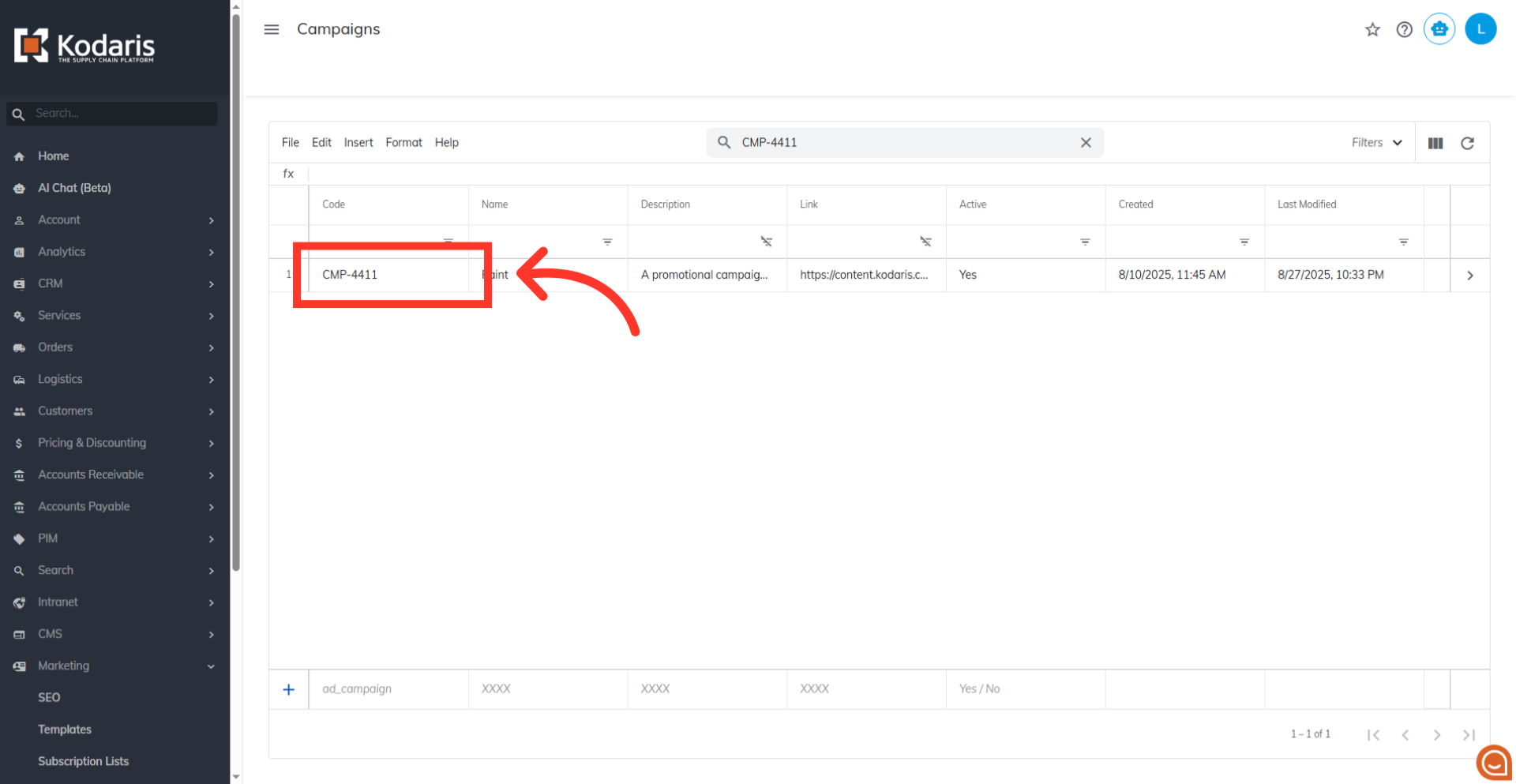 Enter the campaign code you copied. This code identifies the campaign where you want to add your products.