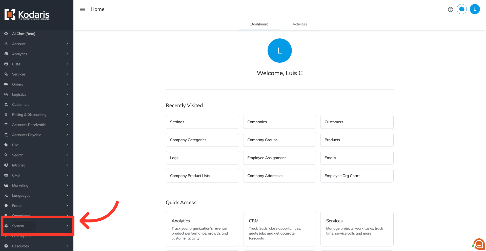 To enable auto-selection of a delivery address for customers upon login, navigate to the "System" section in the Operations Portal.