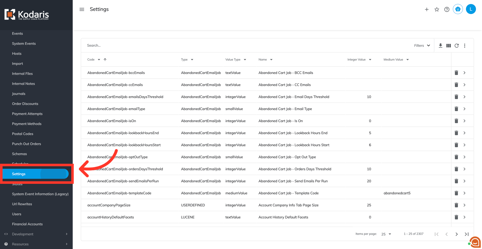 Then, go to the "Settings" screen. In order to access "Settings" you will need to be set up either as an "administrator" or a "superuser", or have the appropriate roles: "settingView" and "settingEdit".