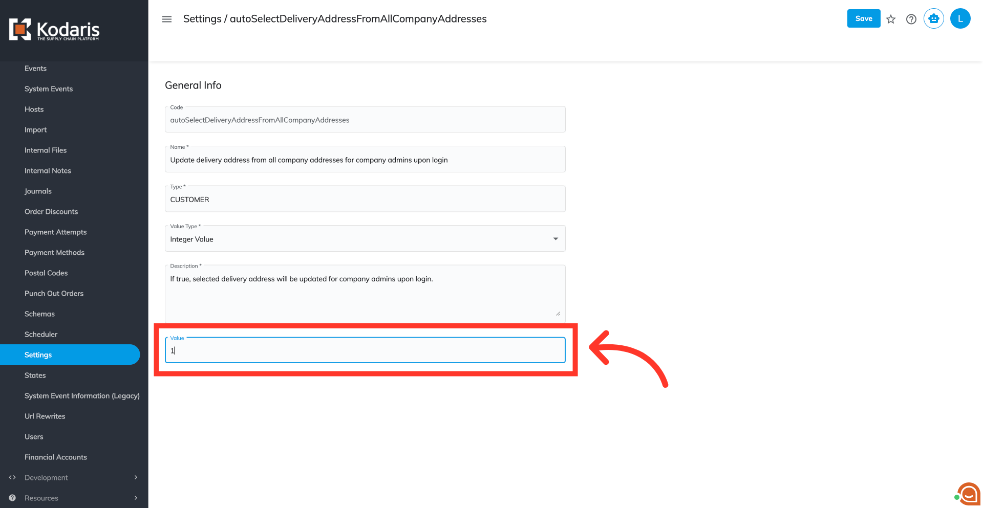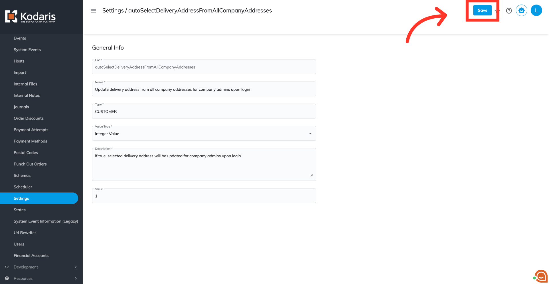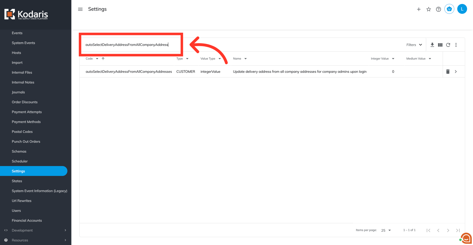 Find the setting named "autoSelectDeliveryAddressFromAllCompanyAddress".
