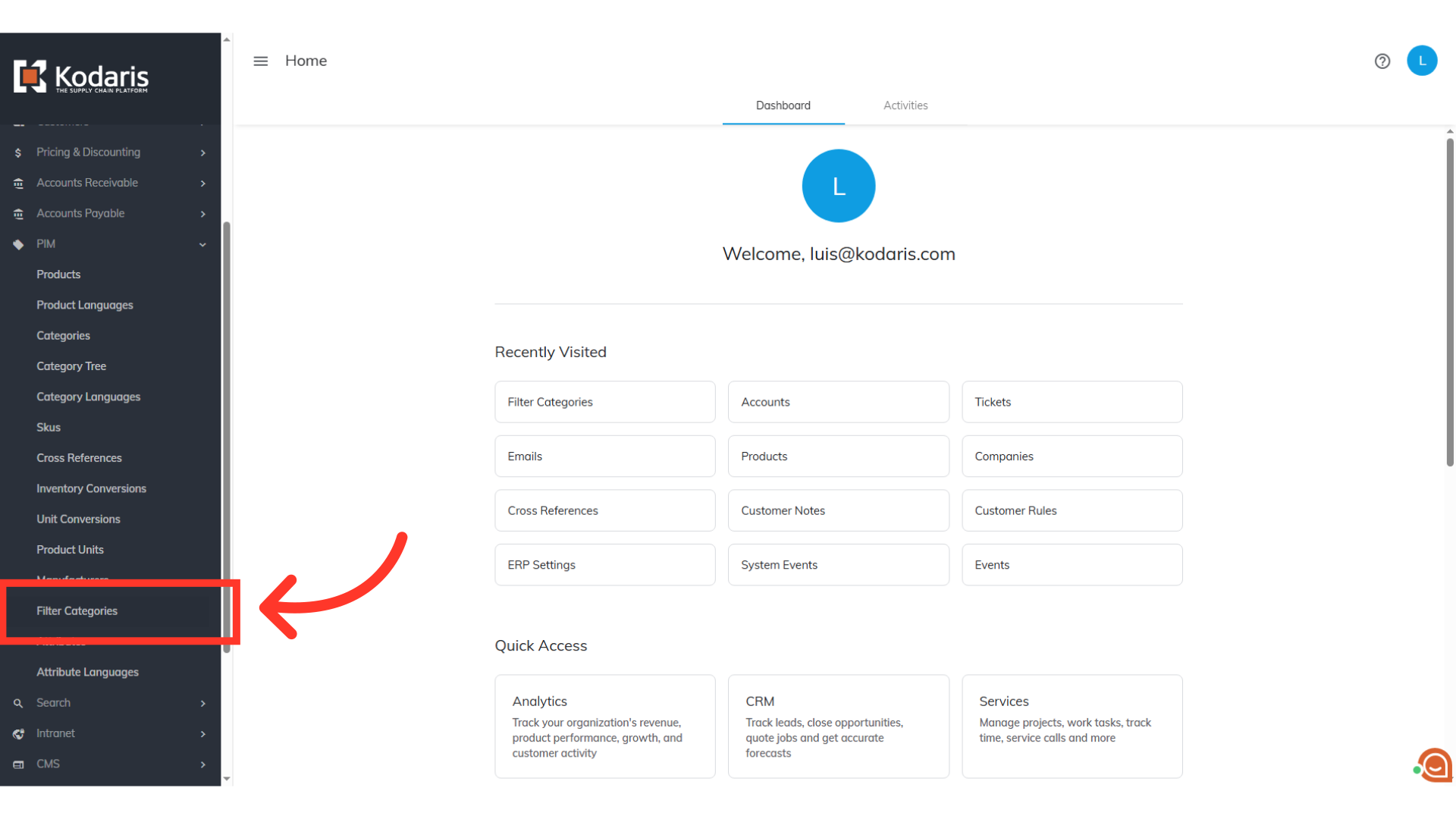 To find filter categories that use display, product display, or searchable values, navigate to "PIM" section in the Operations Portal.