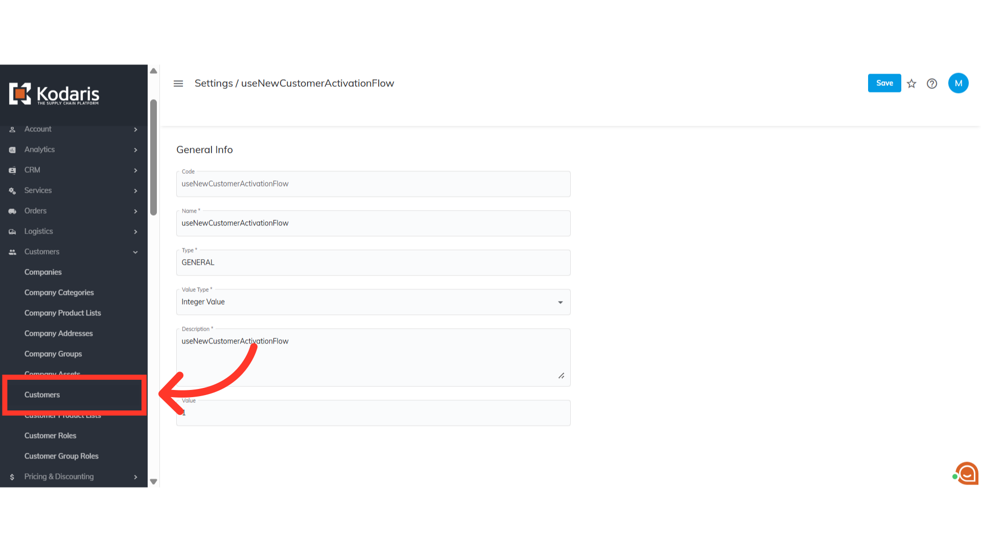 Then, click "Customers". In order to access "Customers" you will need to be set up either as an "administrator" or a "superuser", or have the appropriate roles: "customerView", and "customerEdit".