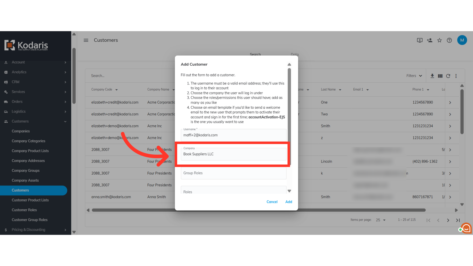 Next, you need to add the company of the customer. You can type to search the company name and select from the list shown.