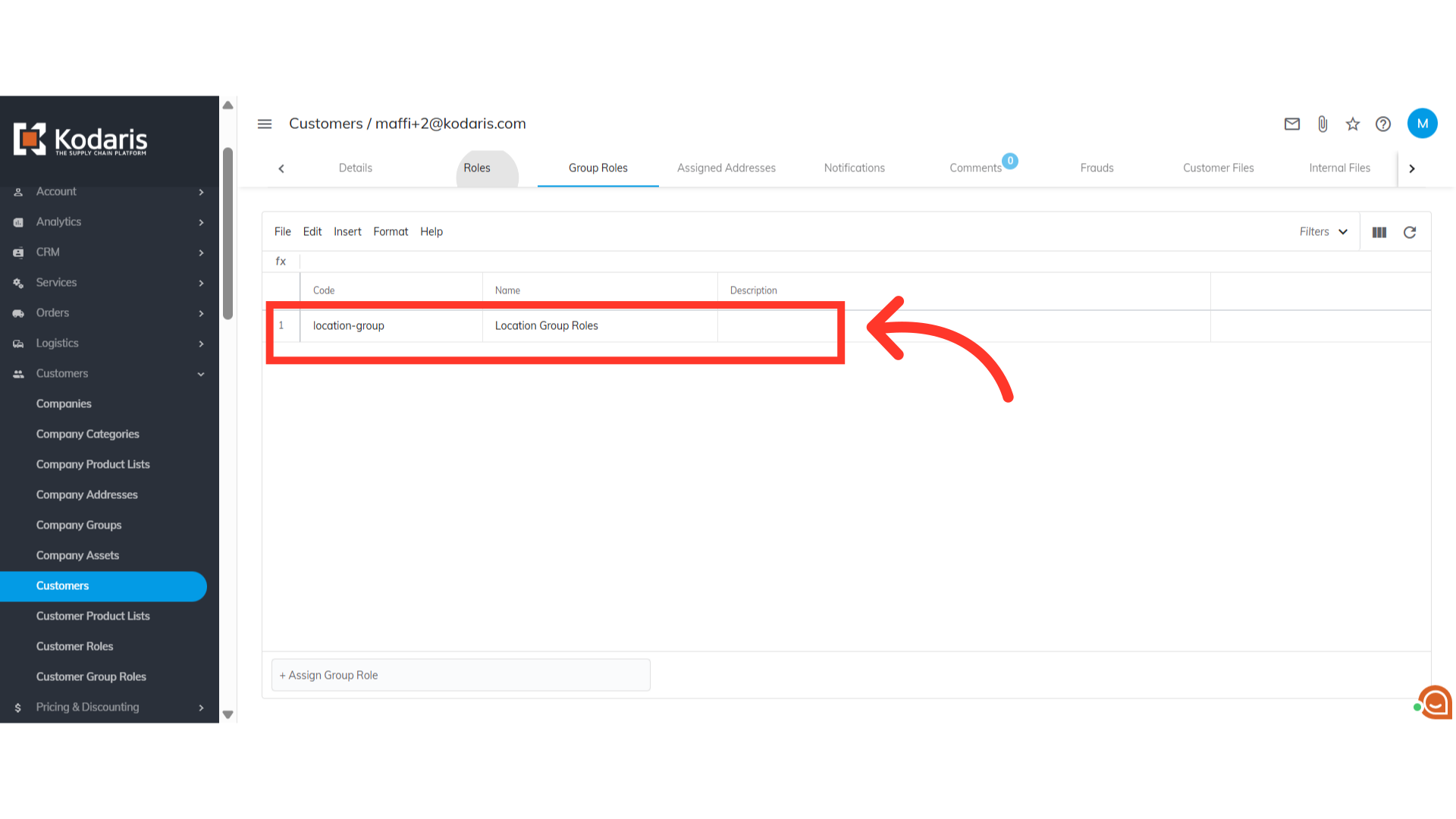 You will be redirected to the details page of the new customer. Go to the "Group Roles" tab.