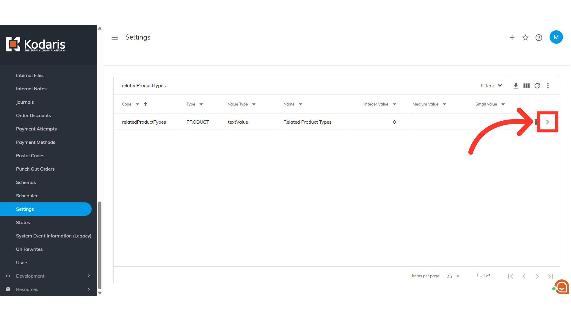 Once added, search for the parent product code you just created, and click the more details icon to go to the more details page.