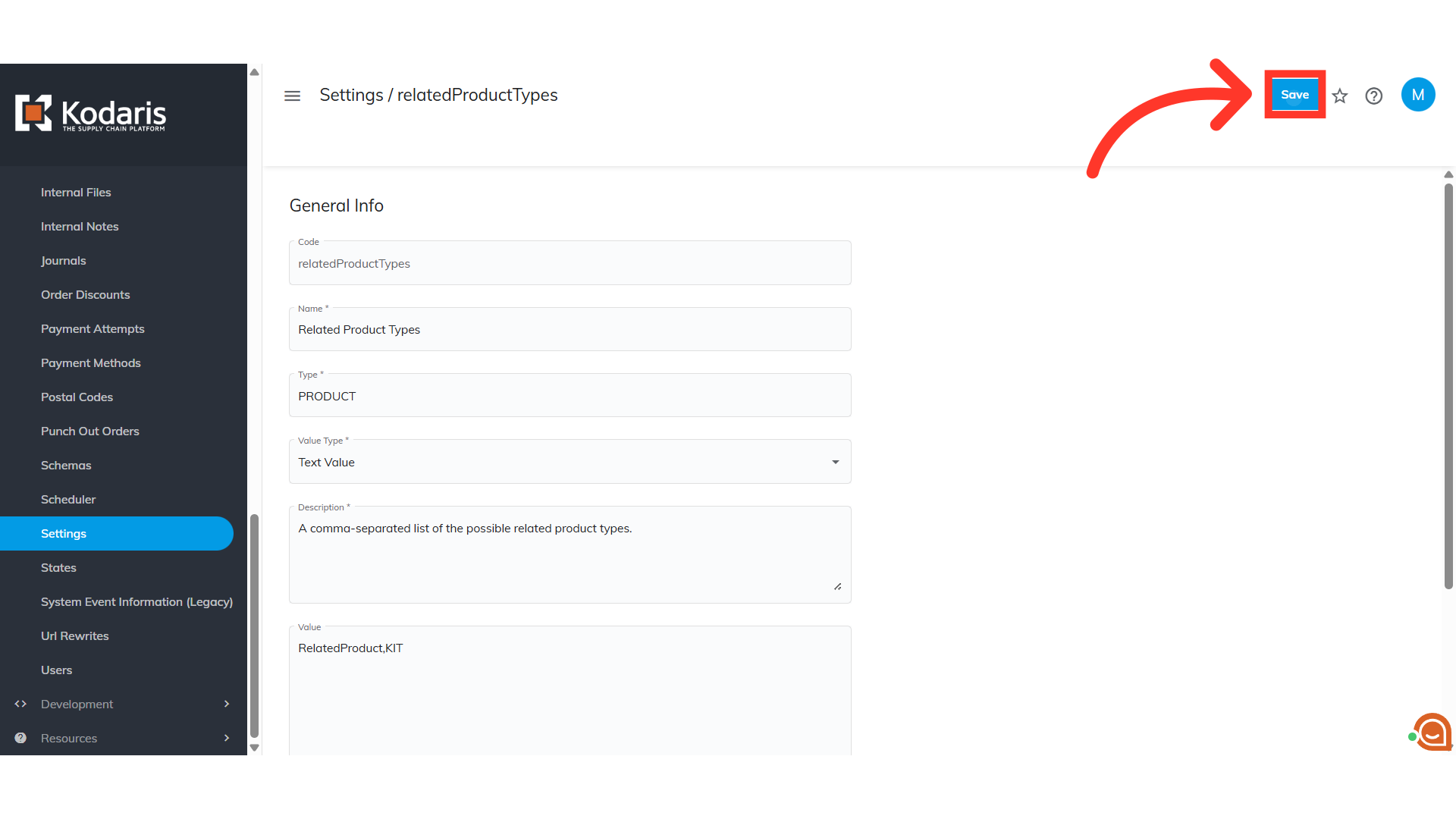 Then, click "Settings". In order to access and edit settings, you will need to be set up either as an "administrator" or a "superuser", or have the following roles: "settingEdit" and "settingView".