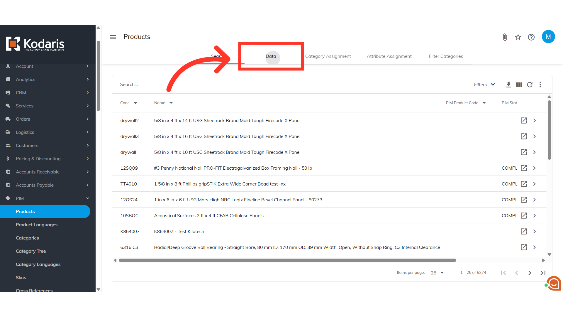 Now that the setting has been updated, you can start creating product kits. Navigate to the "PIM" section.