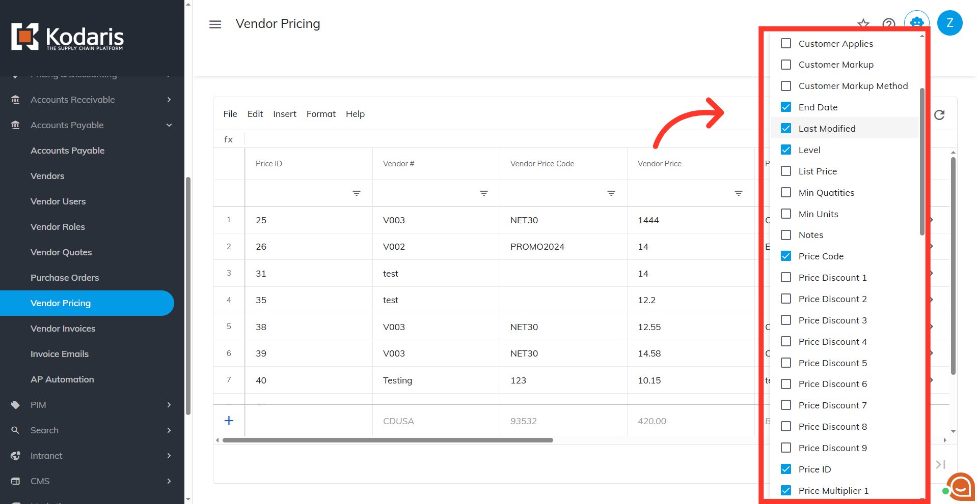 Then, click "Vendor Pricing". In order to access and update “Vendor Pricing”, you will need to be set up either as an “administrator” or a “superuser”, or have the roles of: "vendorProductPriceView" and "vendorProductPriceEdit“.