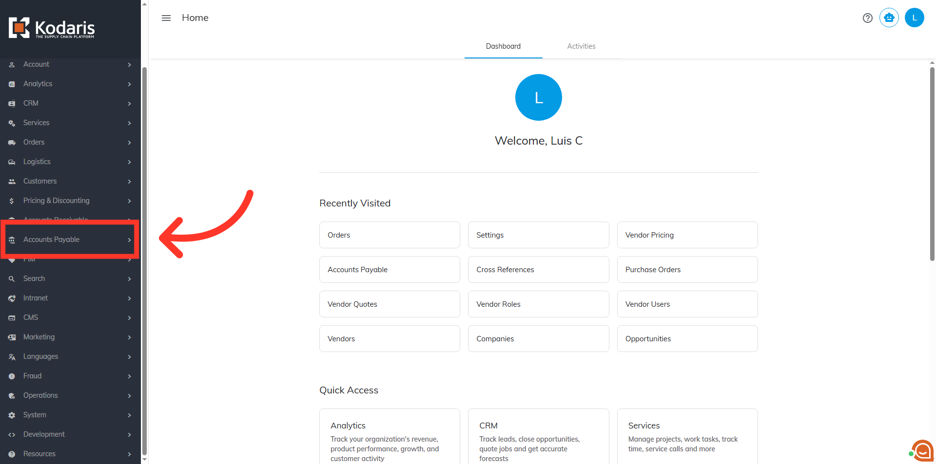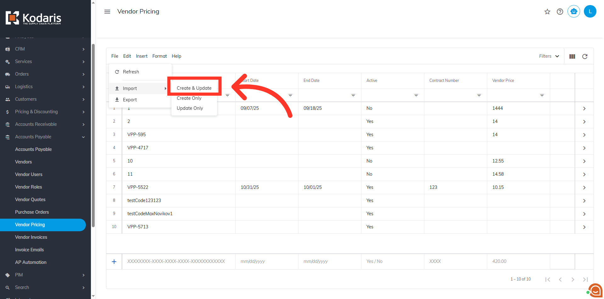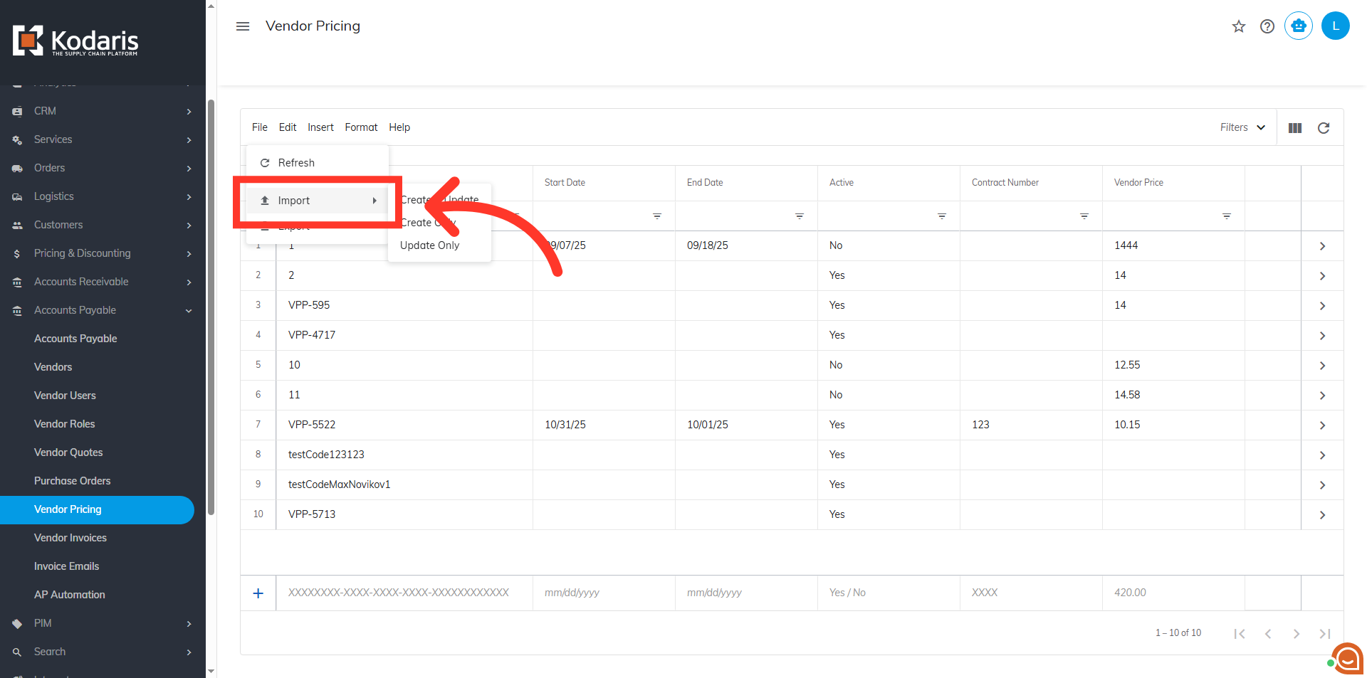To create and update vendor pricing by import, navigate to "Accounts Payable" section of the Operations Portal.