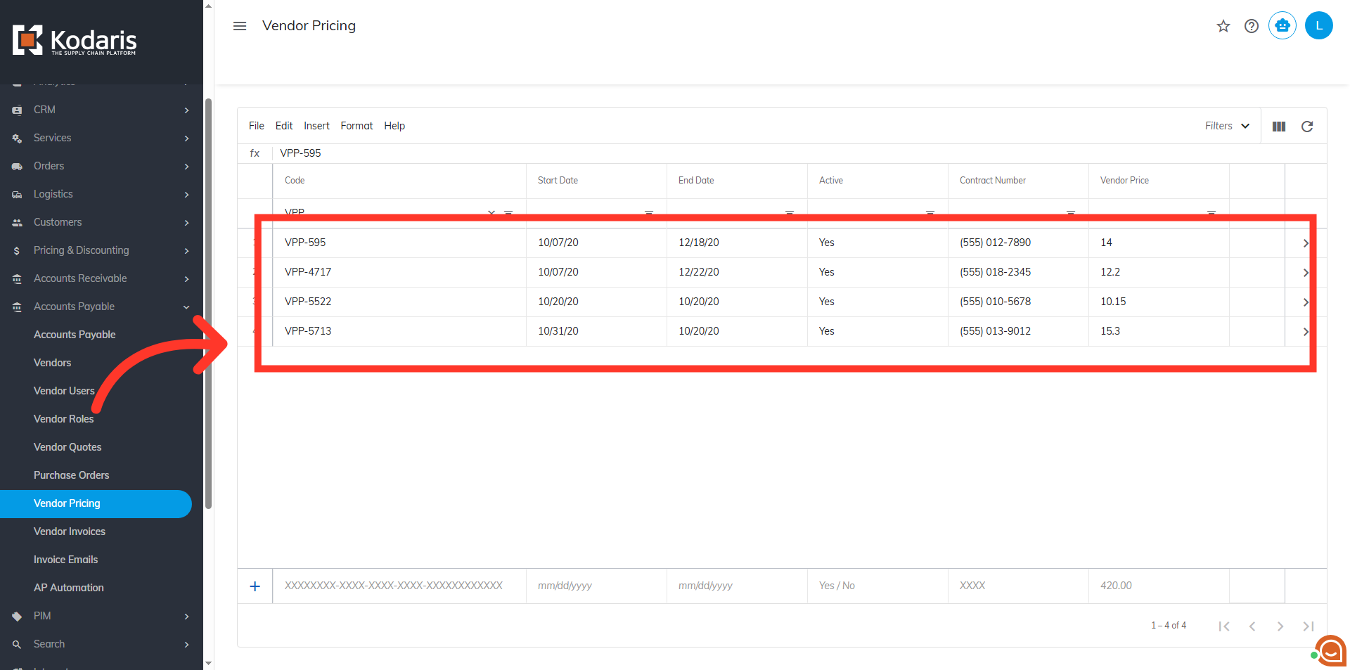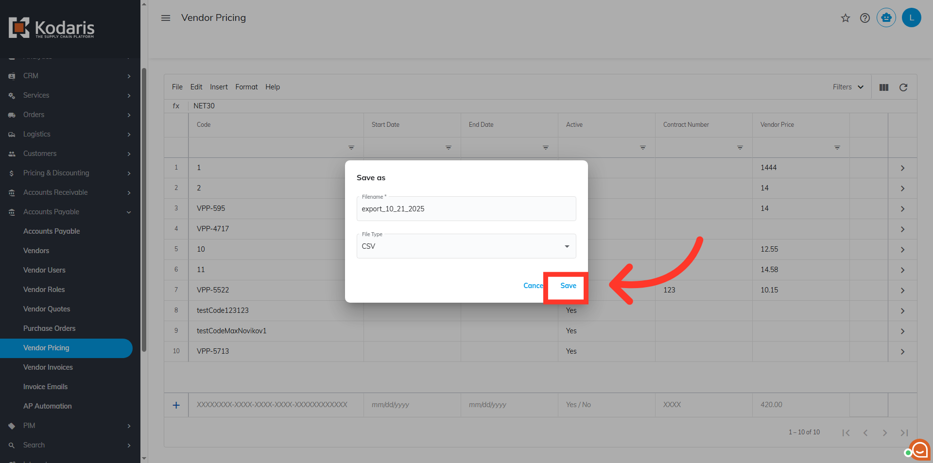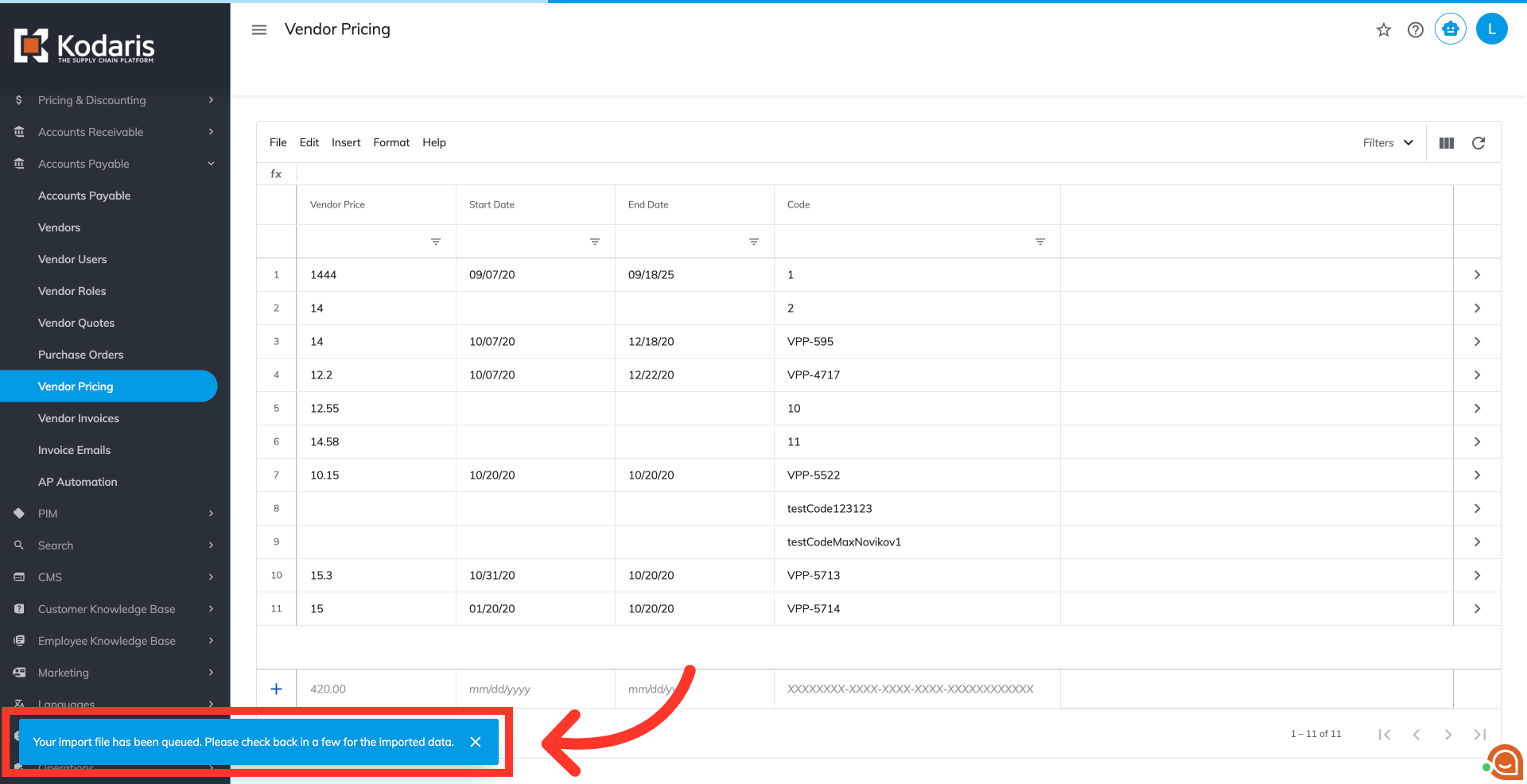 Once the import has finished, confirm the updates on the vendor pricing screen