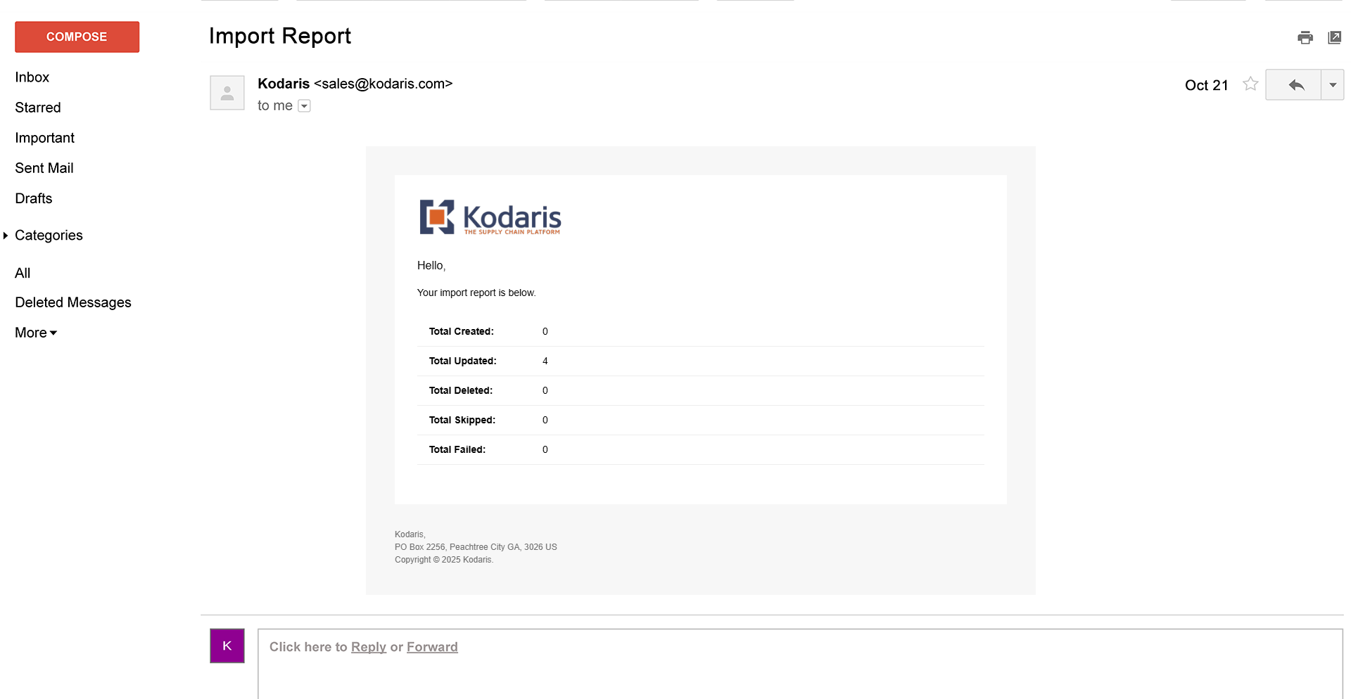An import message will appear letting you know that the import file is in process and to check back in a few minutes for the imported data. If you are importing large amounts of data, it may take a short amount of time to complete. The import will continue to run in the background.