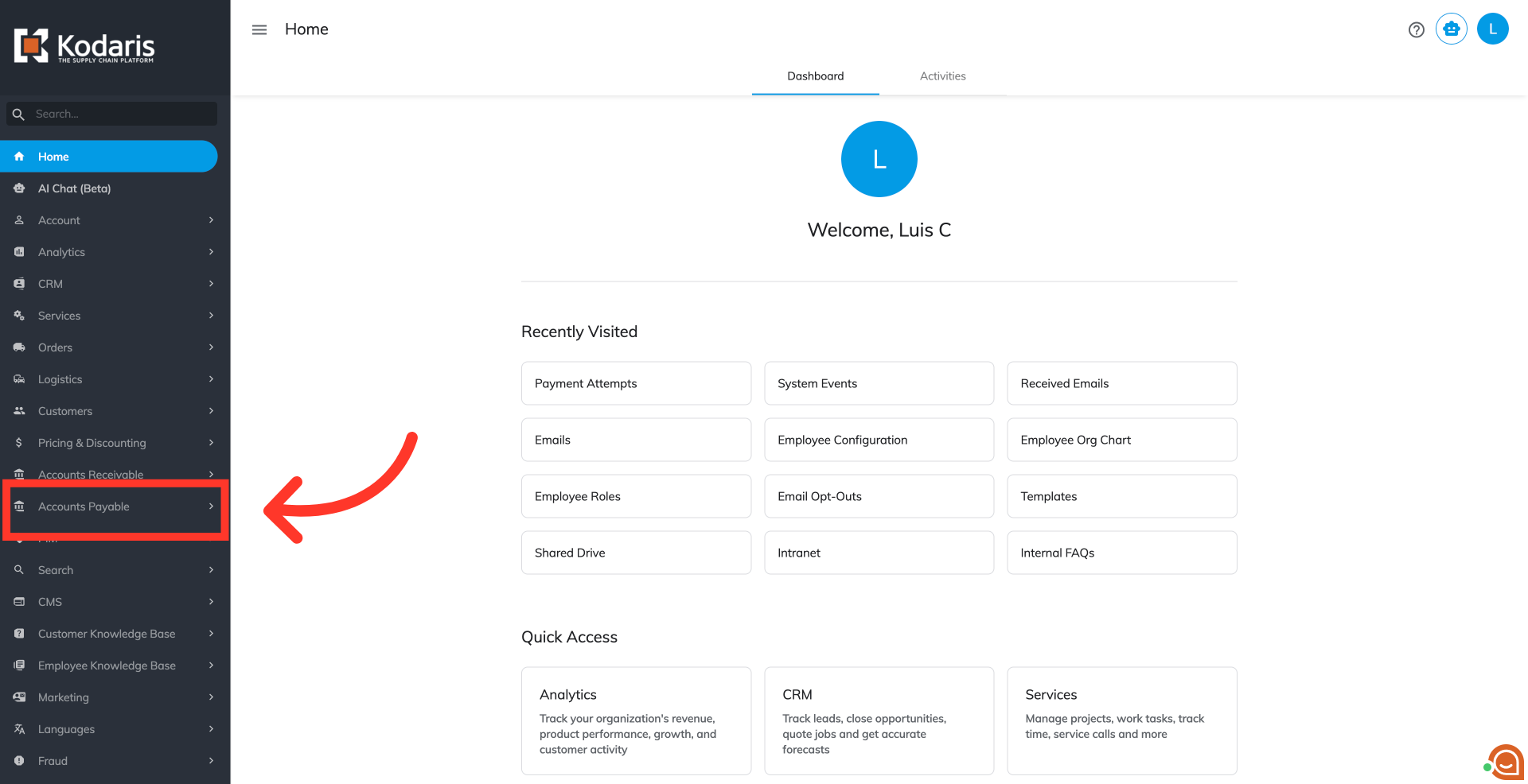 To manage vendor purchase orders additional charges, navigate to the "Accounts Payable" section in the Operations Portal.