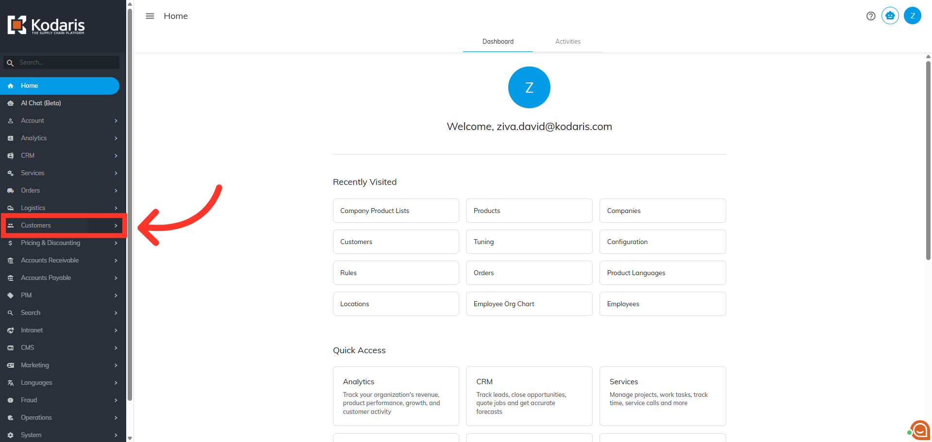 To export all the "Customer Product Lists", you will first need to navigate to the "Customers" section in the Operations Portal.