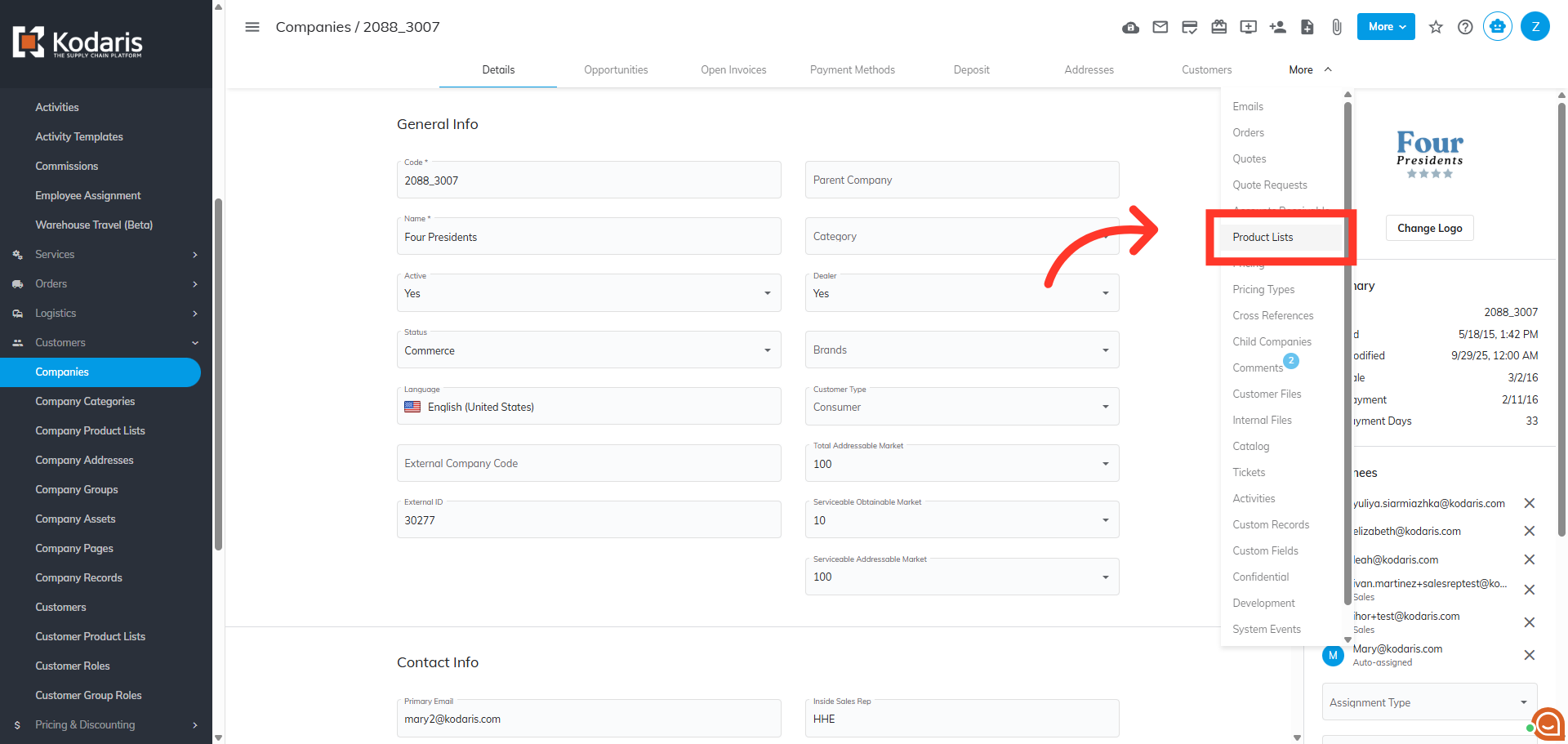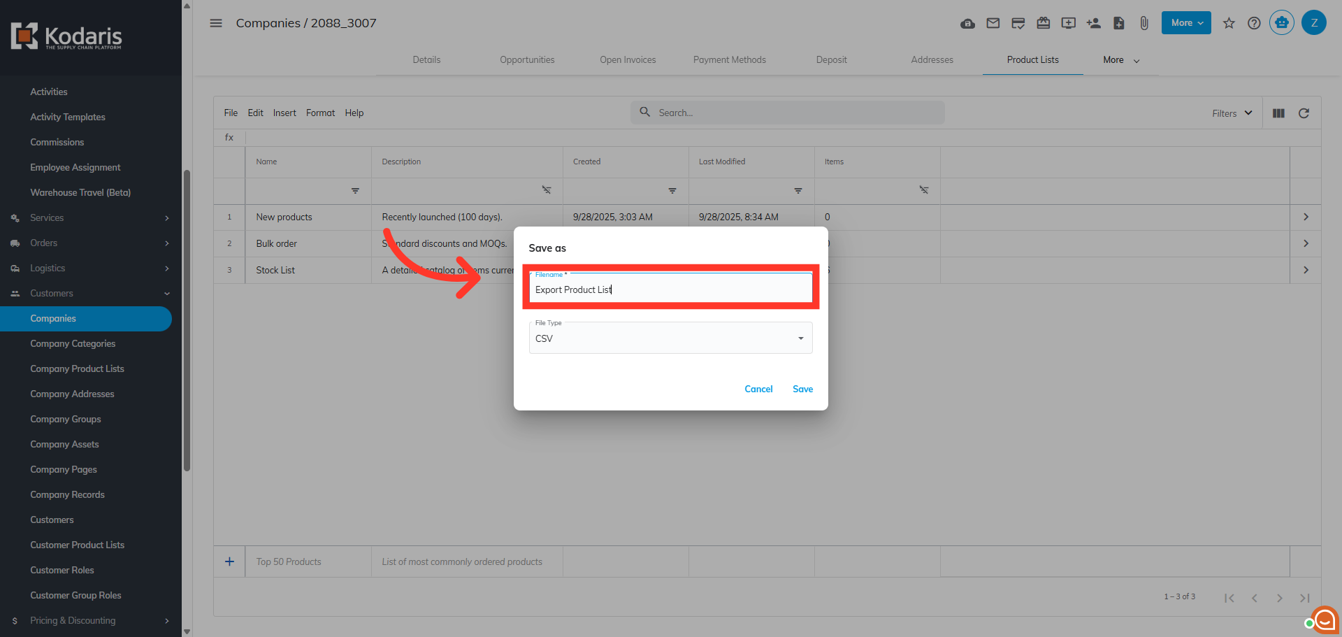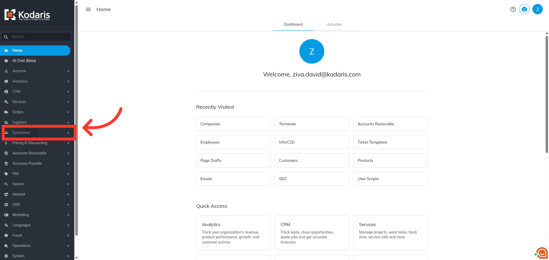 To export Product Lists that are assigned to a specific company, first, navigate to the "Customers" section in the Operations Portal.