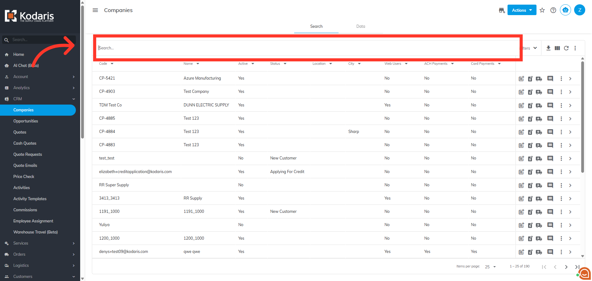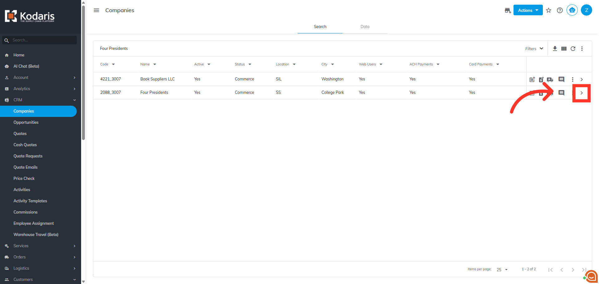To quickly locate the company you wish to view, enter keywords in the "Search..." field.