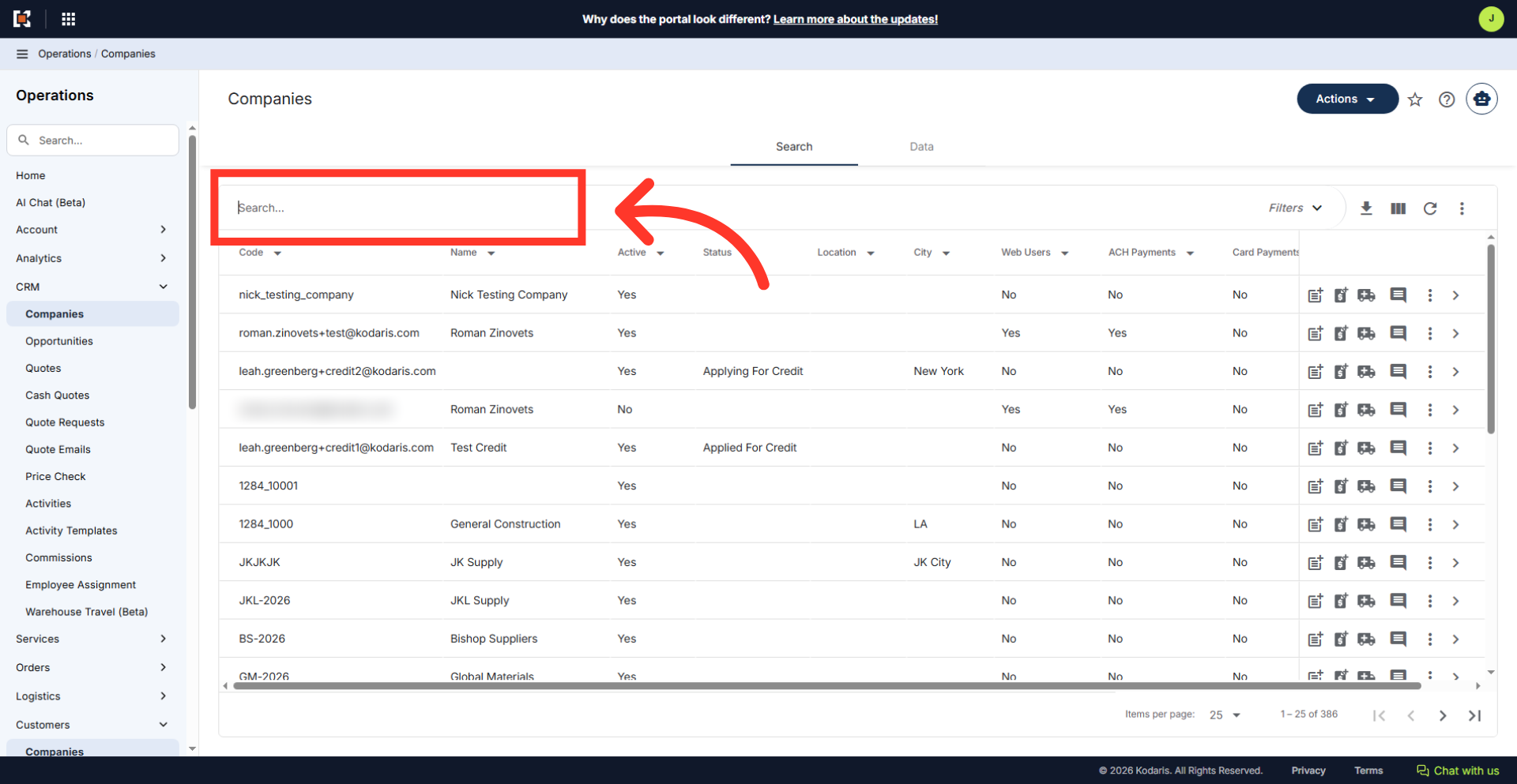 On this screen, use the "Search..." field to find a company.