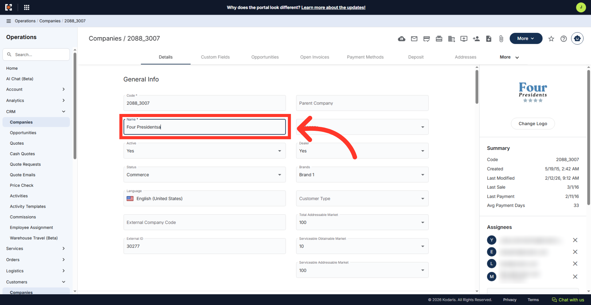 Then, try to perform an action on this screen - for this example, we will try to update the name.