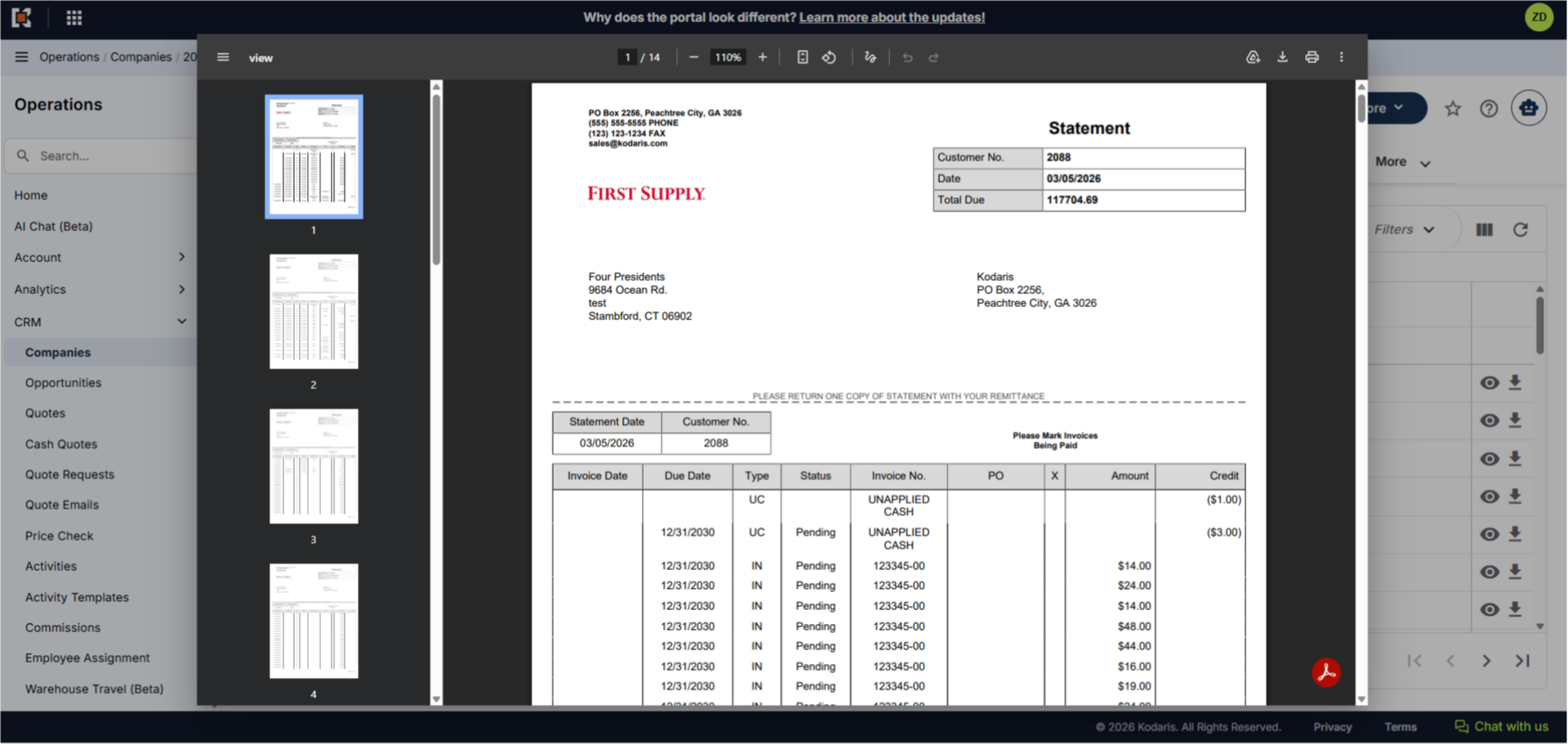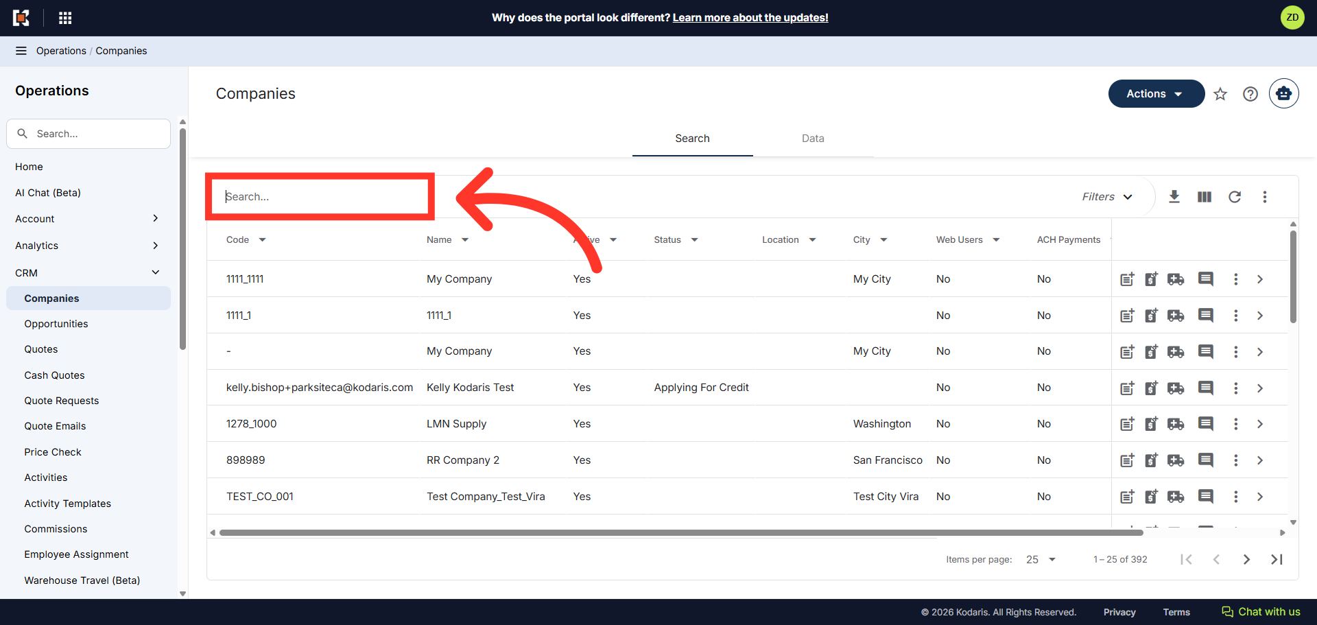 To quickly locate the company you wish to view, use the "Search..." field and search for the company using the company name or company code. In this example, we will a use company name.