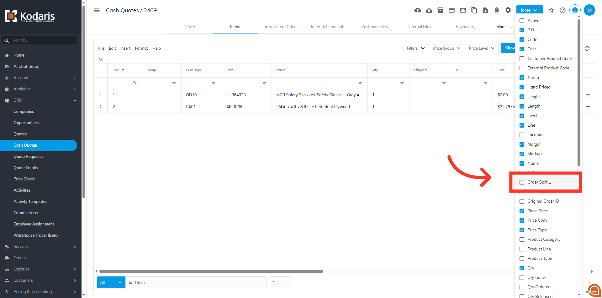 To split a cash quote into separate orders, navigate to the "CRM" section in the Operations Portal.