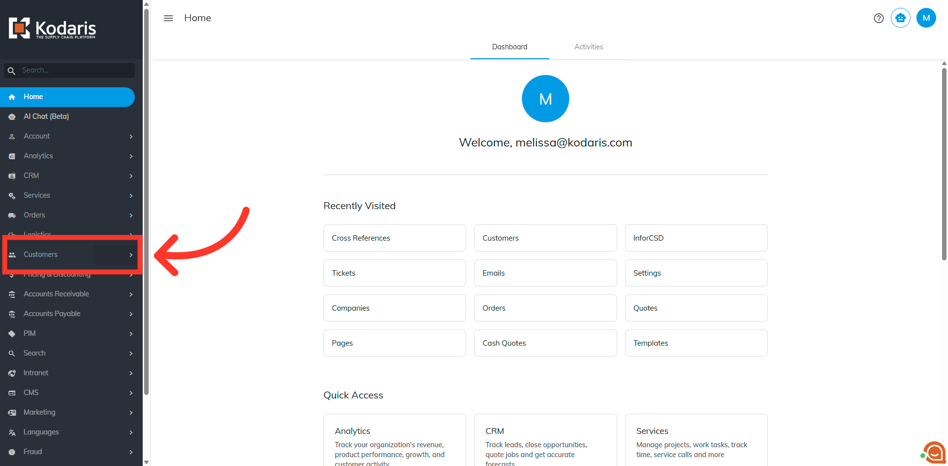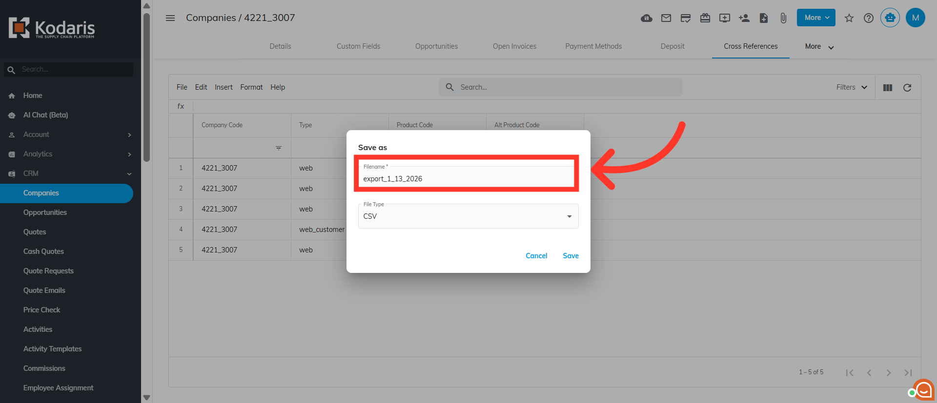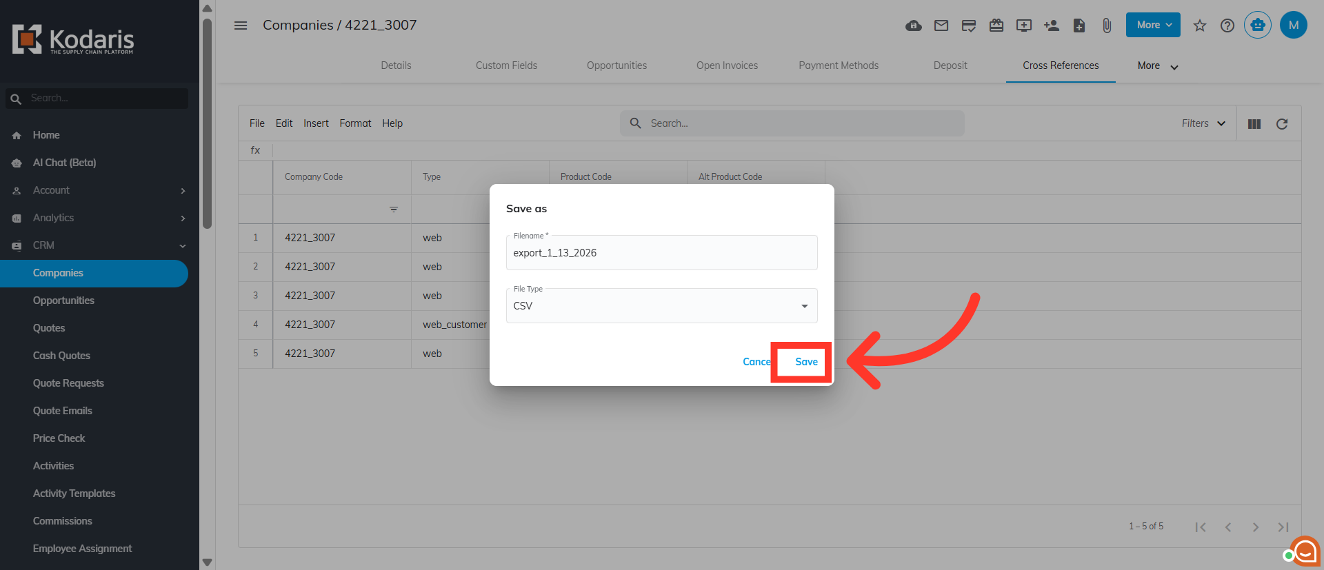 To export company cross references, navigate to the "Customers" section in the Operations Portal