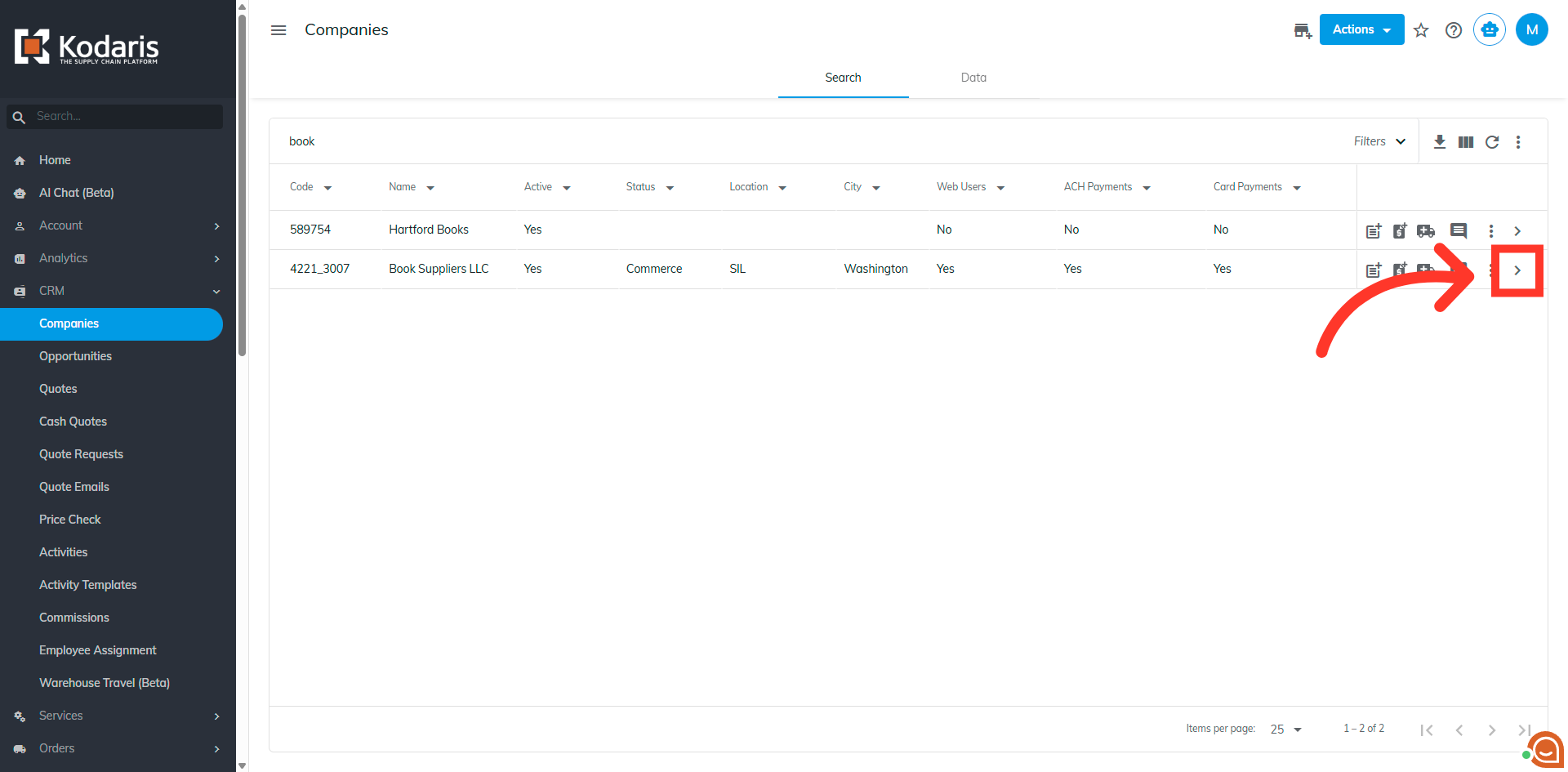 Search for the company. You can enter the company code or company name in the "Search" field.