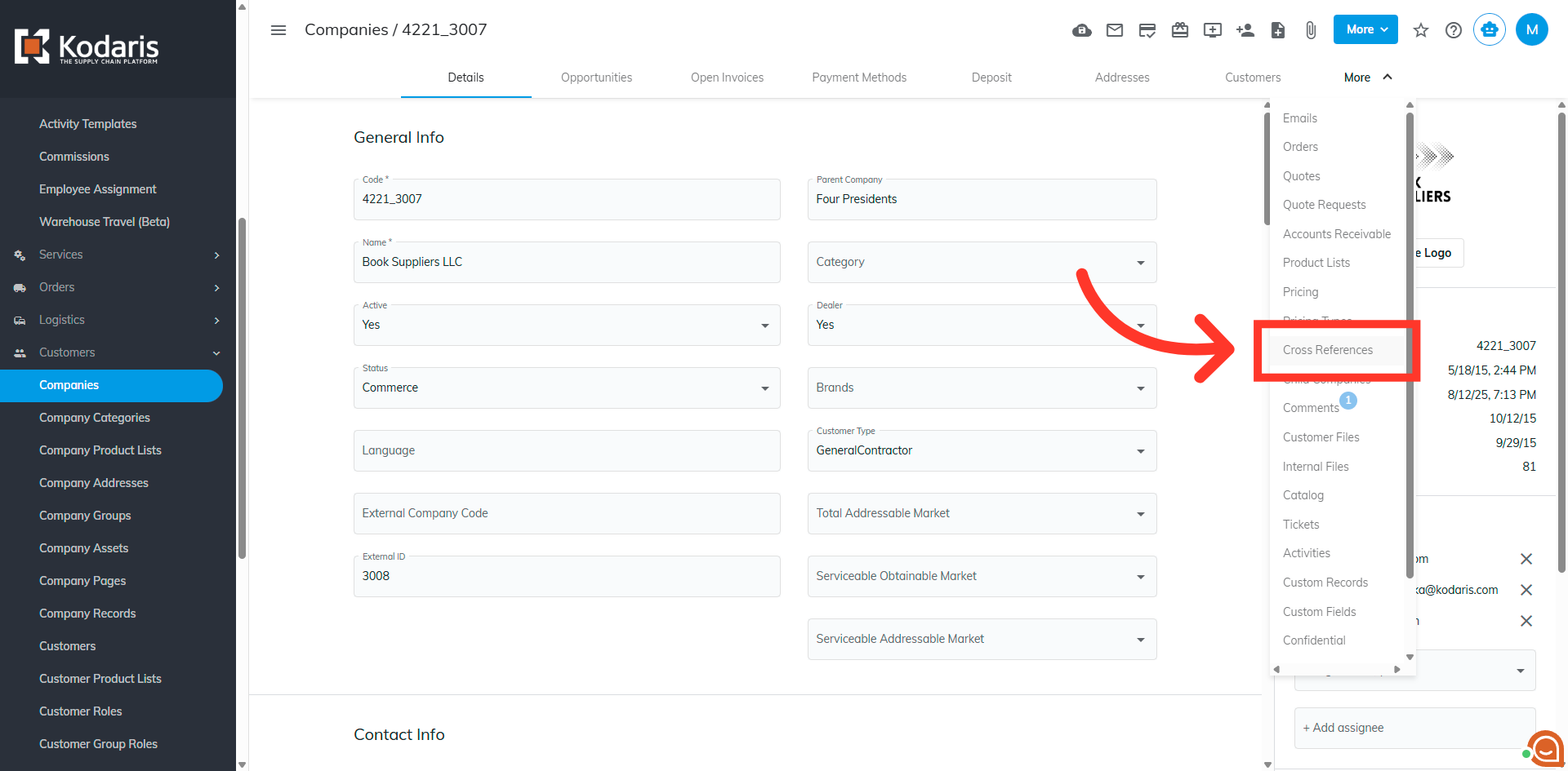 Open the "More" menu to find extended features related to company management.