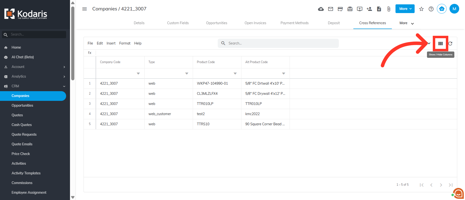 Click the "Show/Hide Columns" icon to select needed columns.