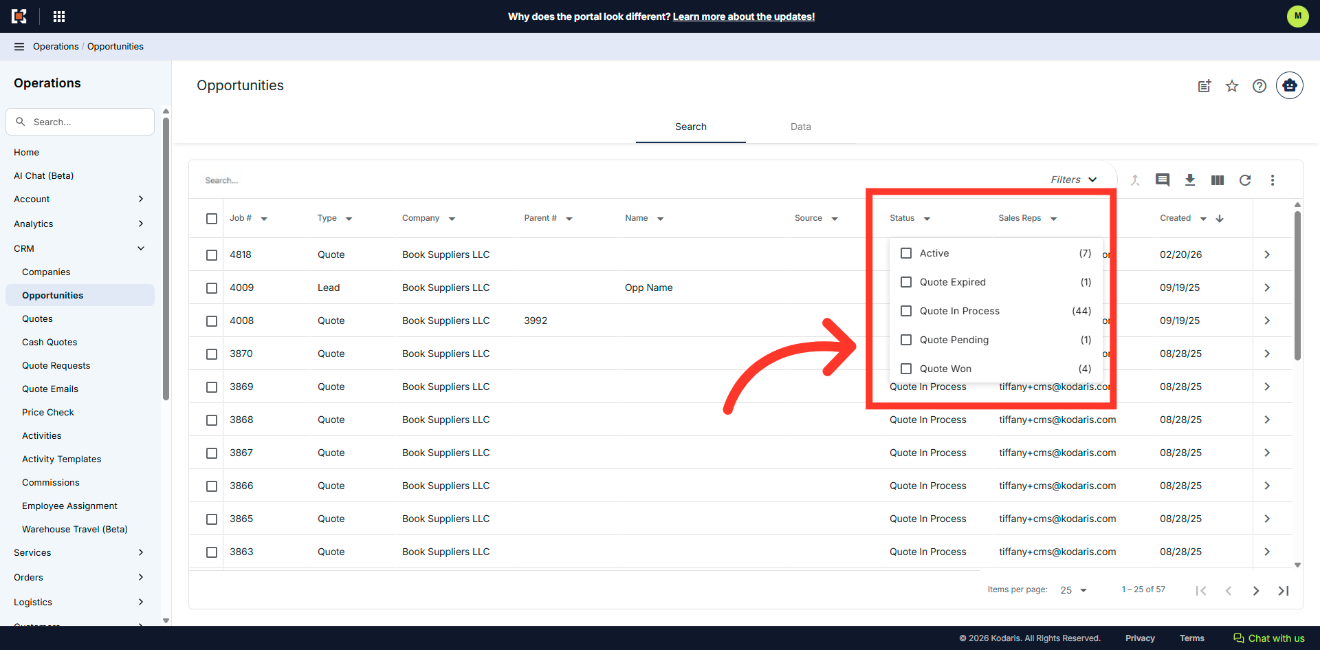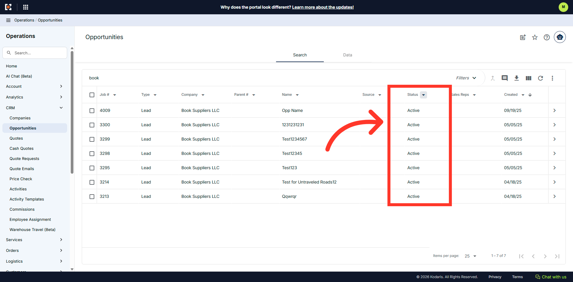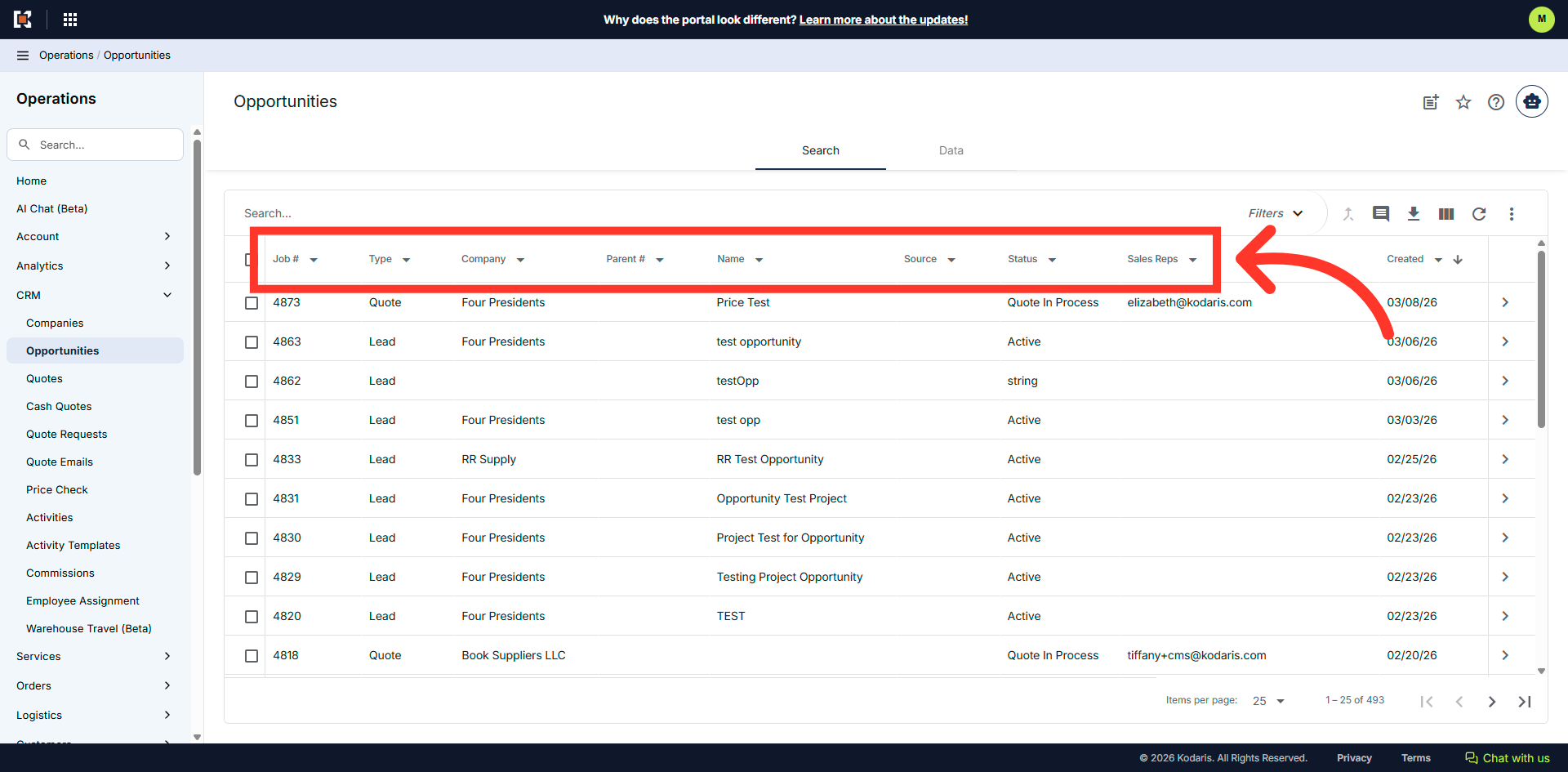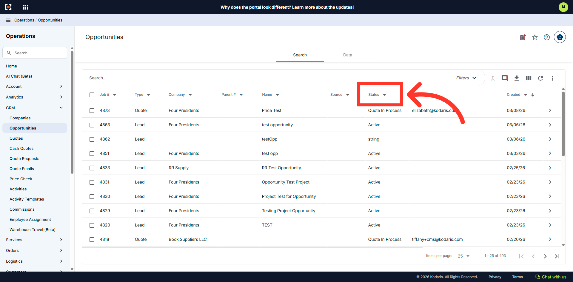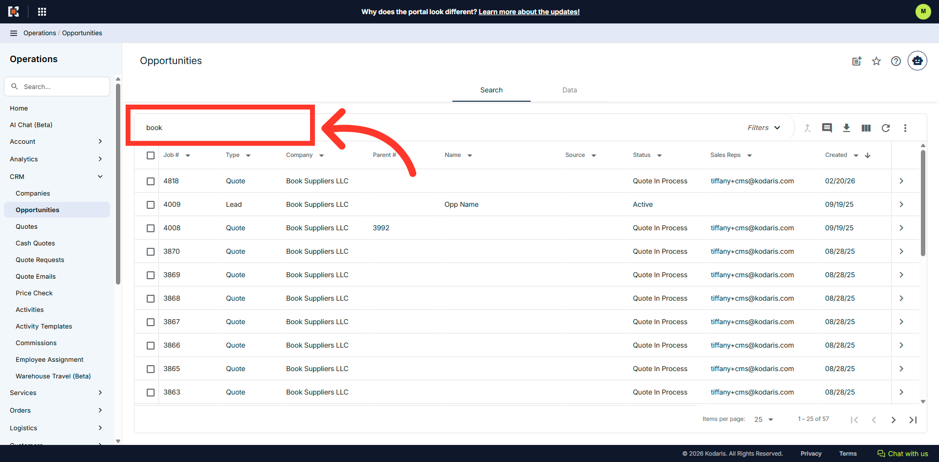 To search for an opportunity in the Operations Portal, navigate to the "CRM" section.